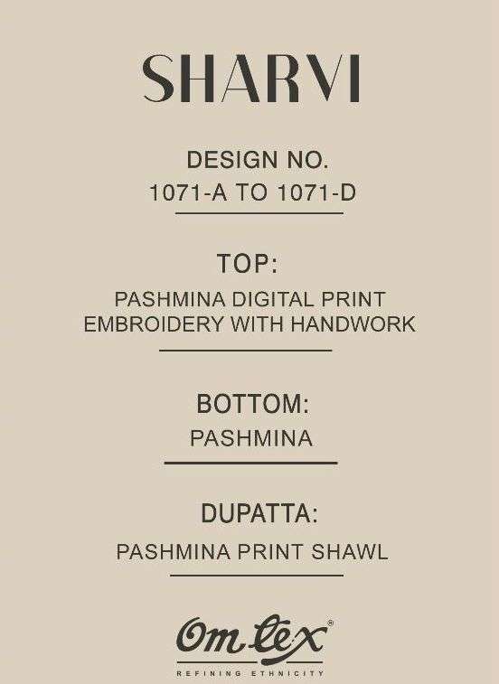 SHARVI BY OM TEX DESIGNER WITH PRINTED AND HAND WORK PASHMINA SUITS ARE AVAILABLE AT WHOLESALE PRICE