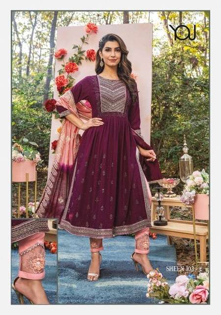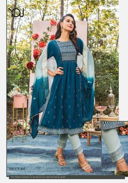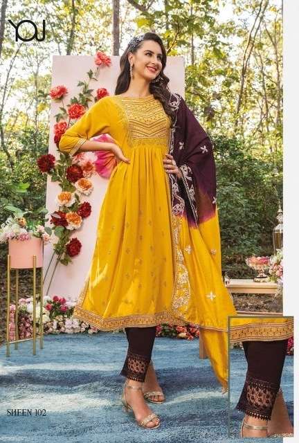 SHEEN NAIRA KURTI BY WANNA DESIGNER WITH WORK NAYLON VISCOSE KURTI WITH PANT AND DUPATTA ARE AVAILABLE AT WHOLESALE PRICE