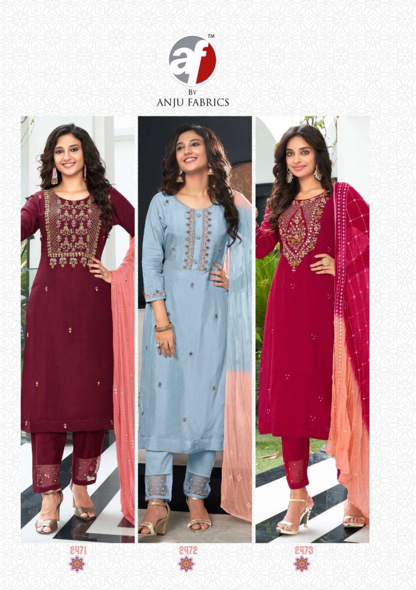 Shehnai Vol-3 By Anju Fabrics Designer With Work Viscose Dola Silk Top With Bottom And Dupatta Are Available At Wholesale Price