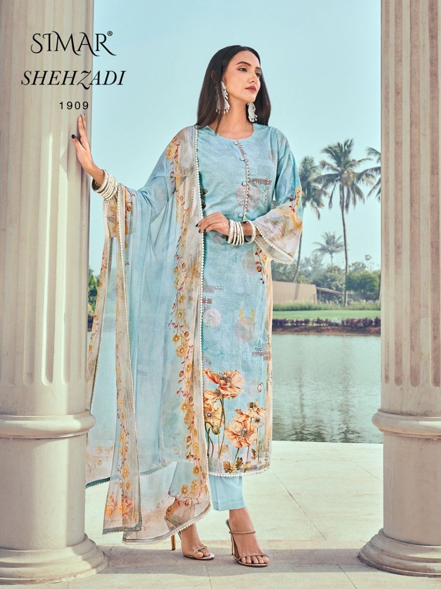 Shehzadi By Simar Designer With Printed And Hand Work Lawn Cotton Suits Are Available At Wholesale Price
