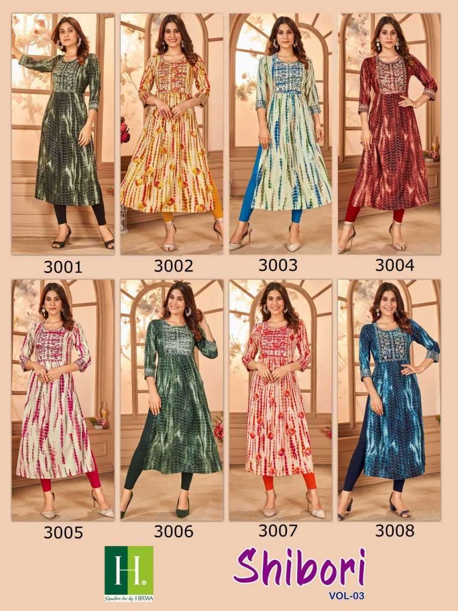 | Name: | hirwa-SHIBORI VOL-3 SERIES 3001 TO 3008 KURTI BY HIRWA |