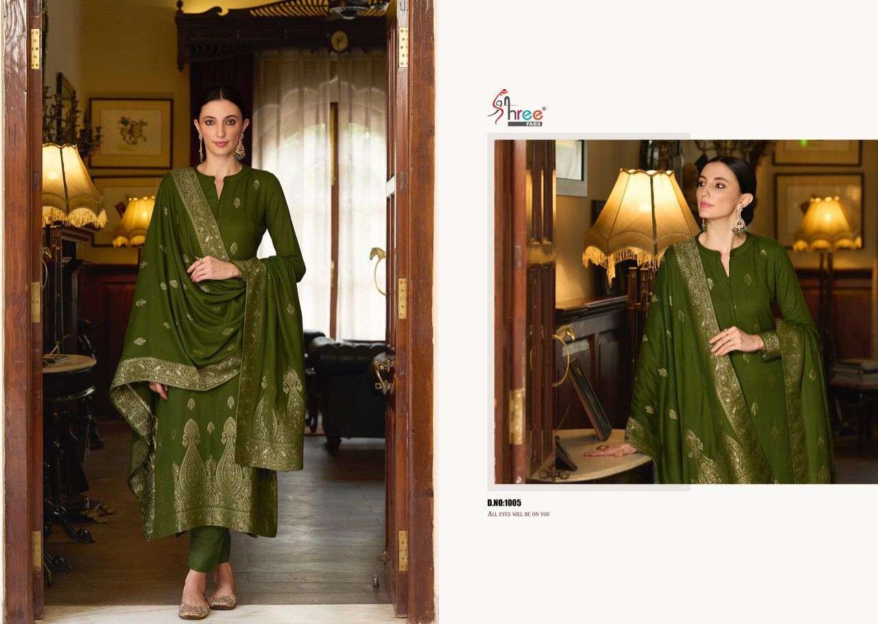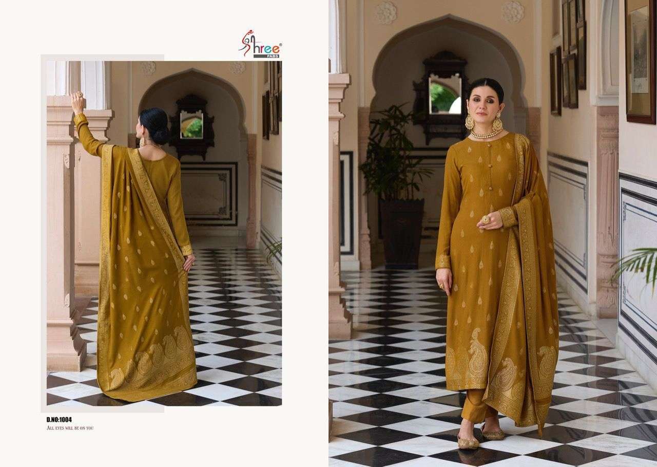 SHIDDAT BY SHREE FABS DESIGNER WITH WORK VISCOSE JACQUARD PASHMINA SUITS ARE AVAILABLE AT WHOLESALE PRICE