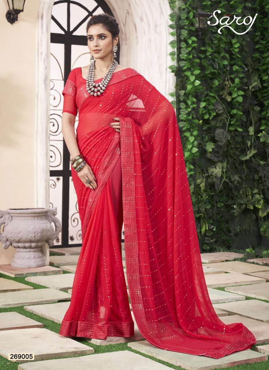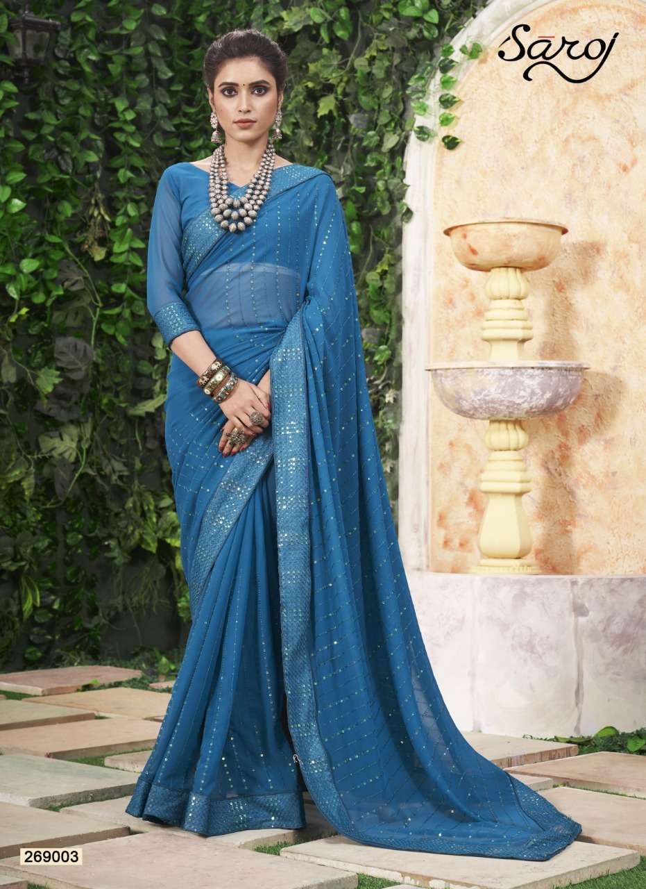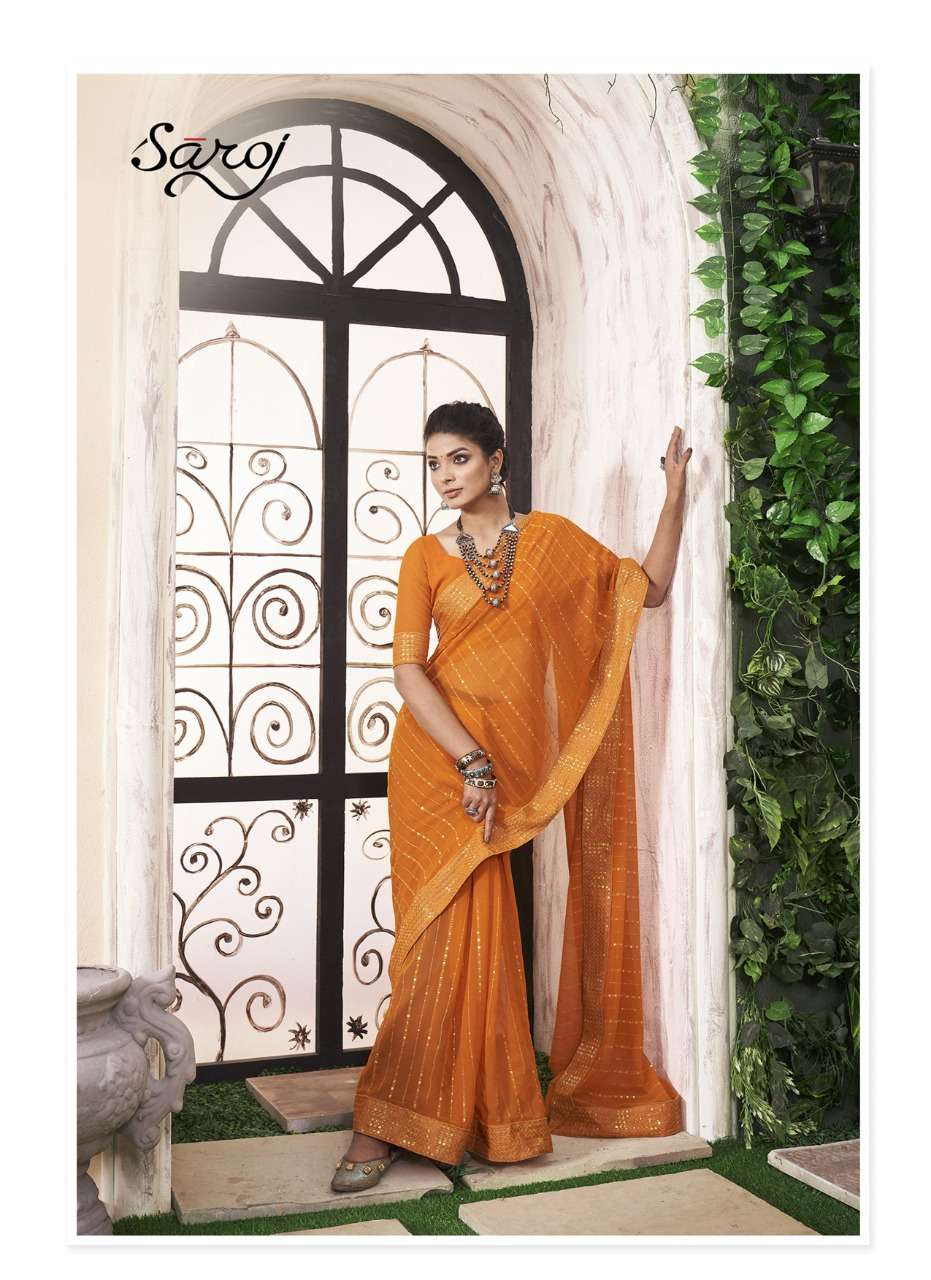 SHINNING STAR SAREE BY SAROJ DESIGNER WITH WORK PARTY WEAR GEORGETTE SAREES ARE AVAILABLE AT WHOLESALE PRICE