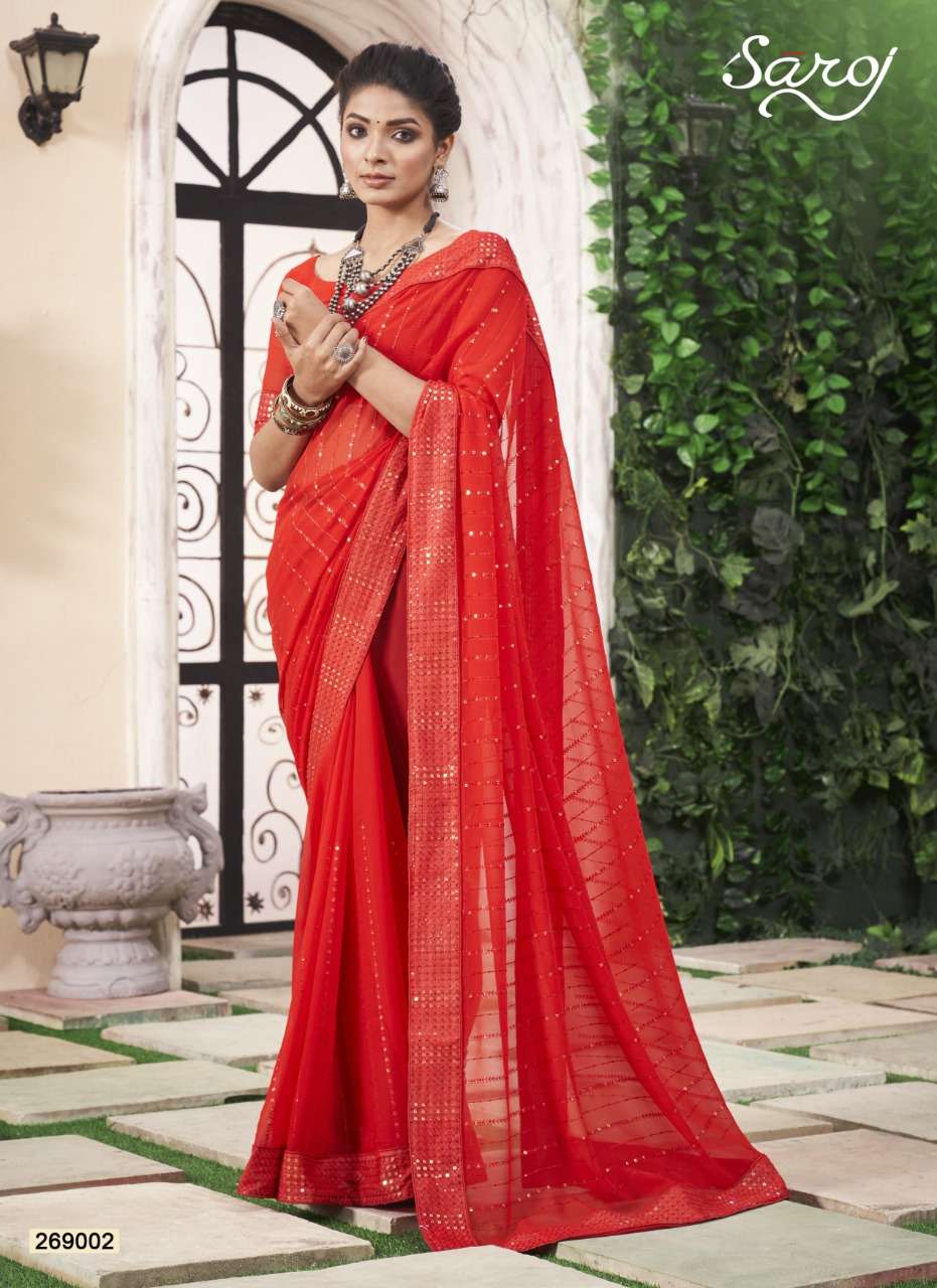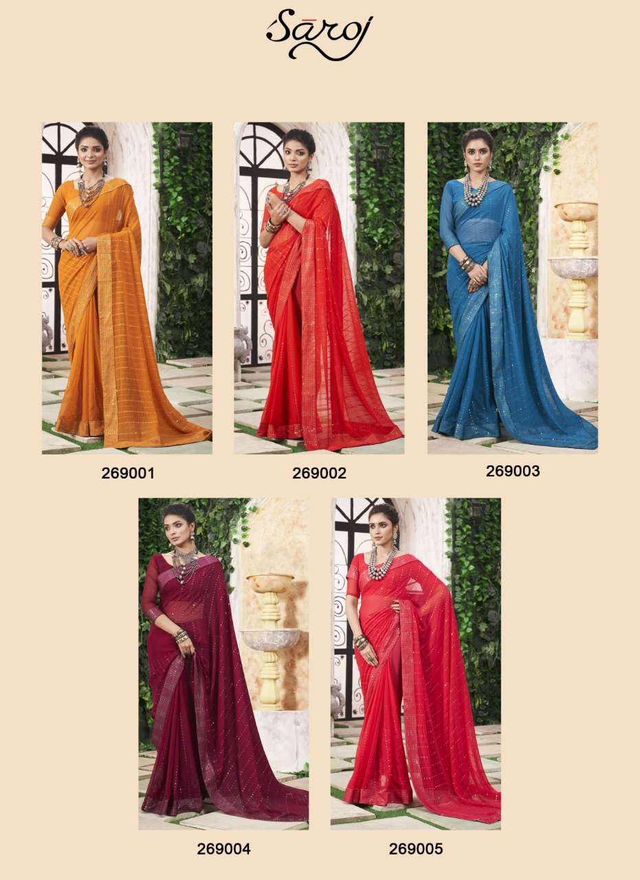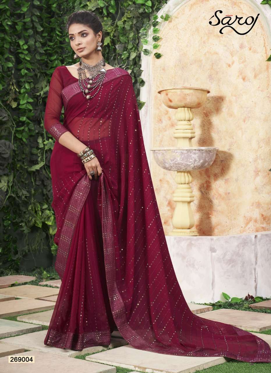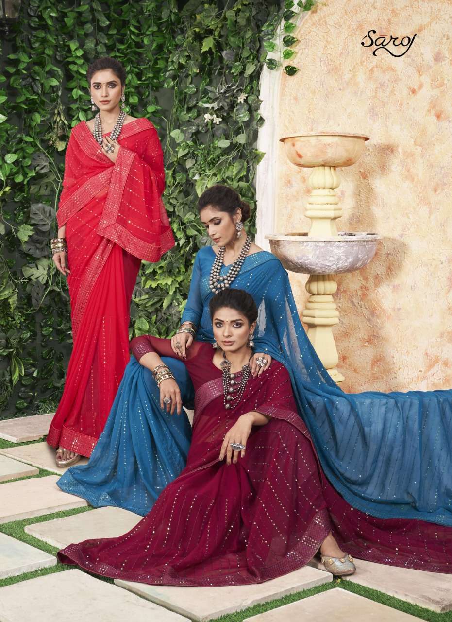 SHINNING STAR SAREE BY SAROJ DESIGNER WITH WORK PARTY WEAR GEORGETTE SAREES ARE AVAILABLE AT WHOLESALE PRICE