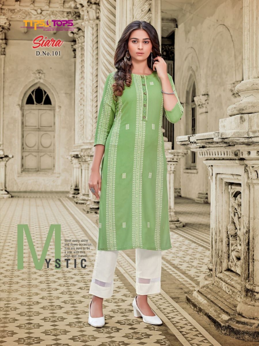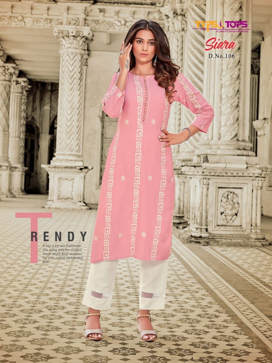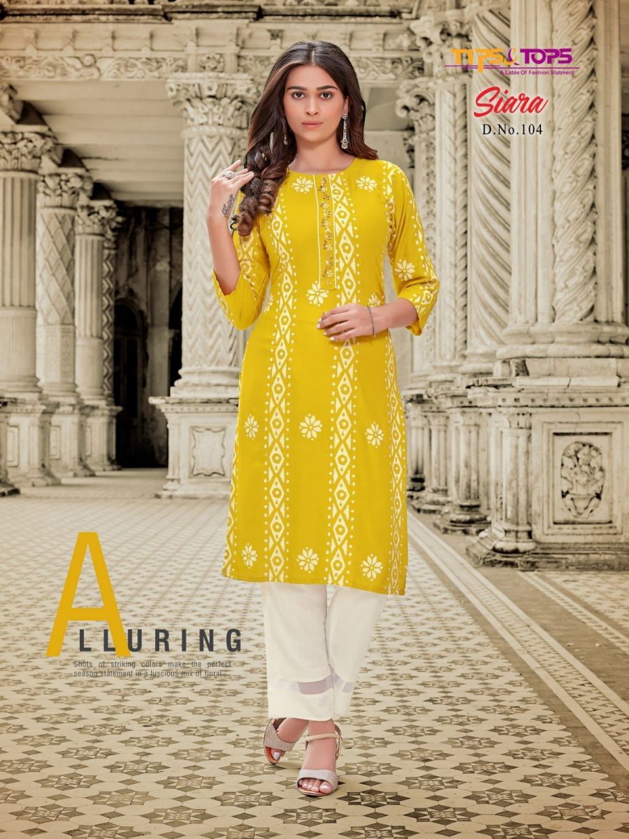 Siara Kurti By Tips & Tops Designer With Printed And Work Rayon Kurti With Pant Are Available At Wholesale Price