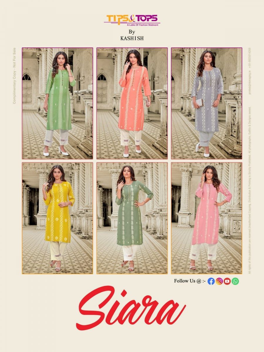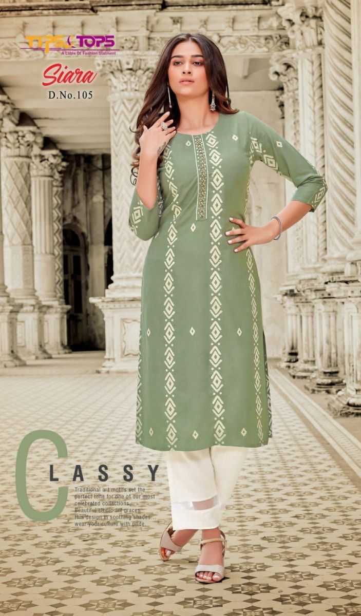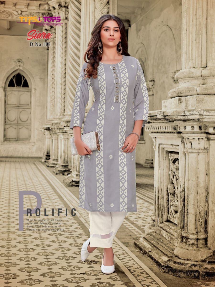Siara Kurti By Tips & Tops Designer With Printed And Work Rayon Kurti With Pant Are Available At Wholesale Price