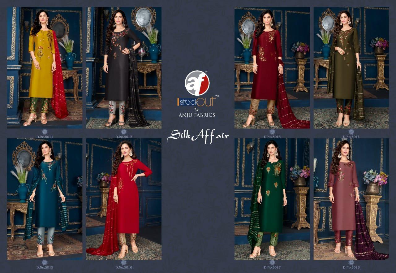Silk Affair Kurti By Anju Fabrics Designer With Work Silk Kurti With Bottom And Dupatta Are Available At Wholesale Price