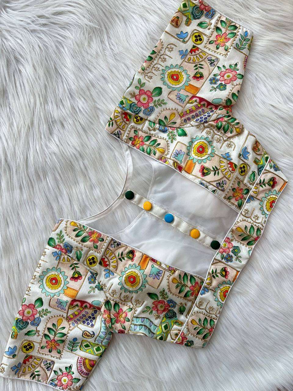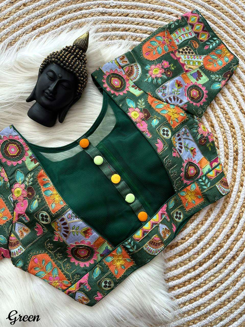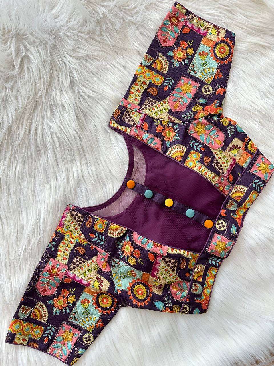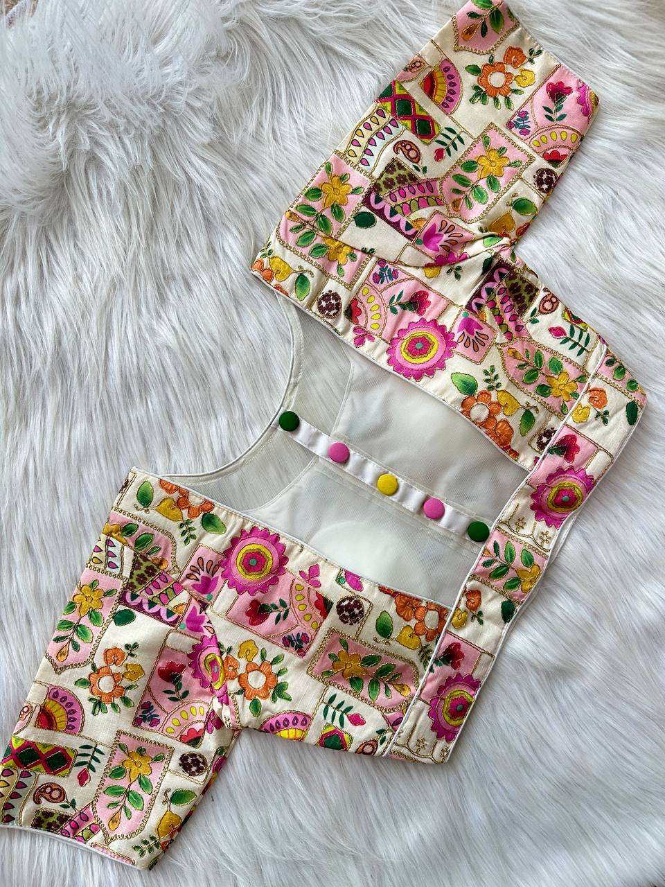 Multi Work Match With any Designer Sarees Multi Codding Work On Malai Silk Fabric