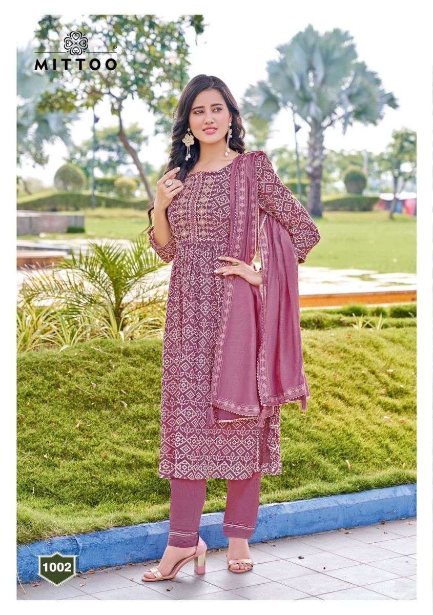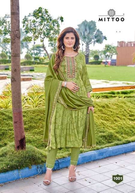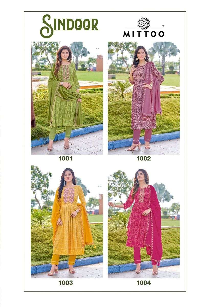 SINDOOR KURTI BY MITTO DESIGNER WITH WORK CHANDERI VISCOSE KURTI WITH PANT AND DUPATTA ARE AVAILABLE AT WHOLESALE PRICE