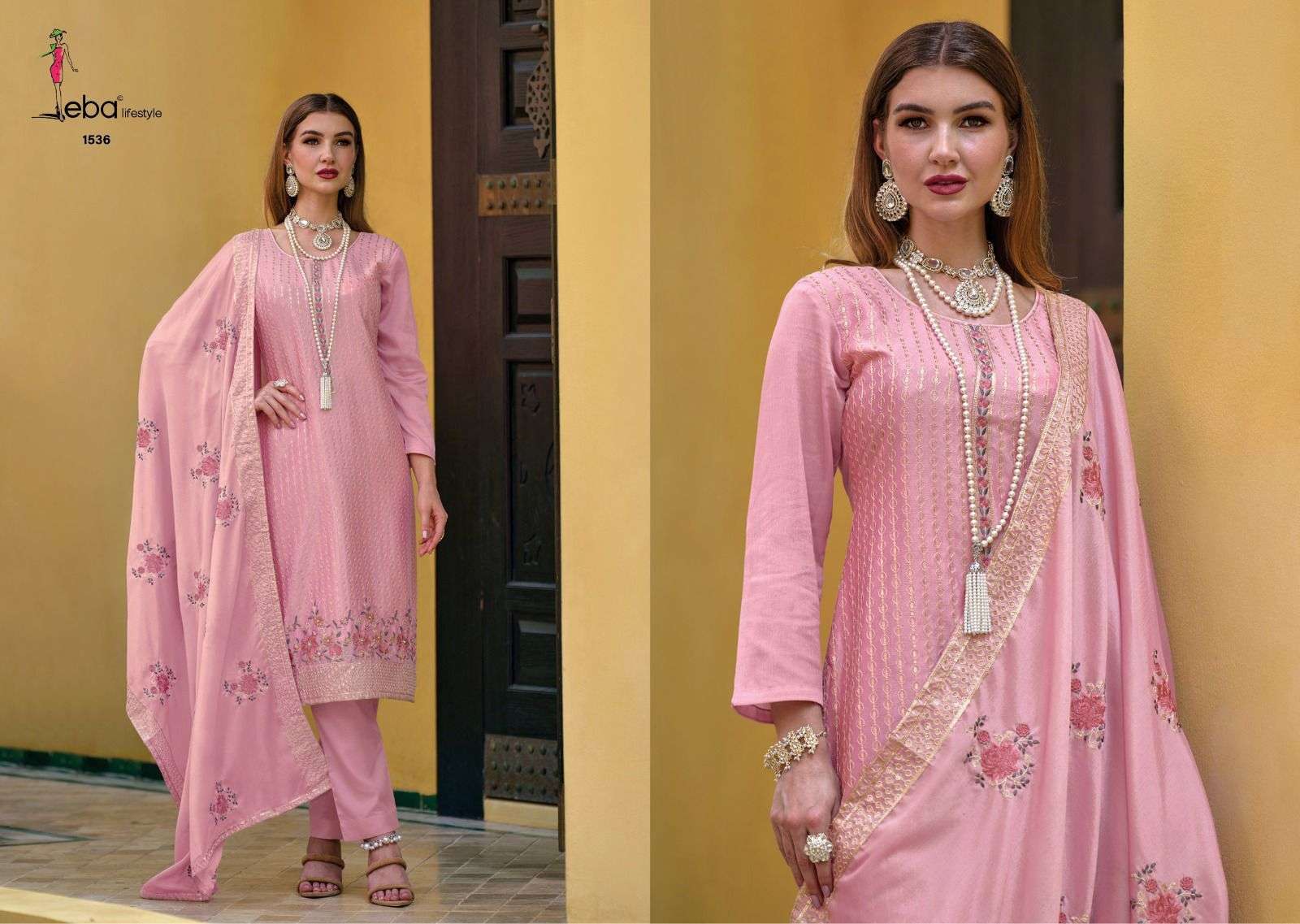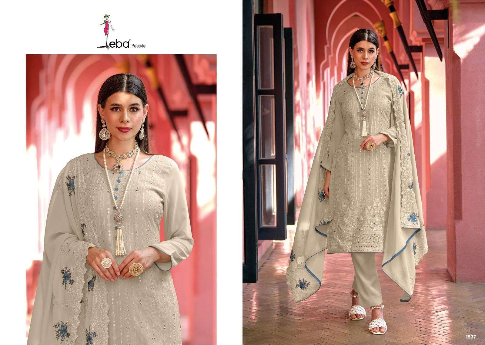 SISA VOL-2 BY EBA DESIGNER WITH WORK CHINON SUITS ARE AVAILABLE IN SINGLES AT WHOLESALE PRICE