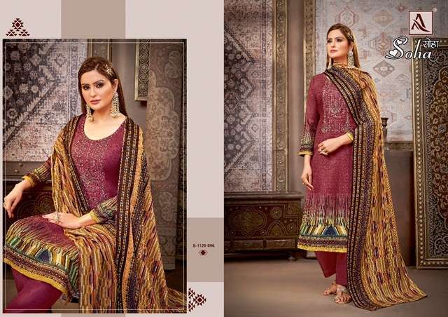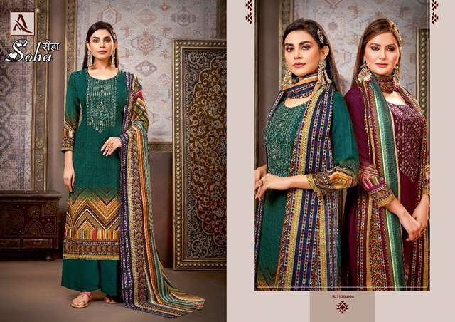 SOHA BY ALOK SUITS DESIGNER WITH PRINTED AND WORK PASHMINA SUITS ARE AVAILABLE AT WHOLESALE PRICE