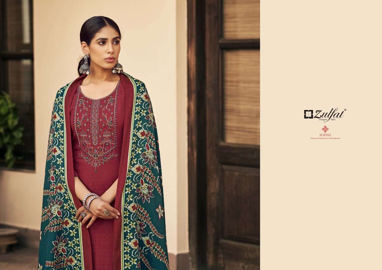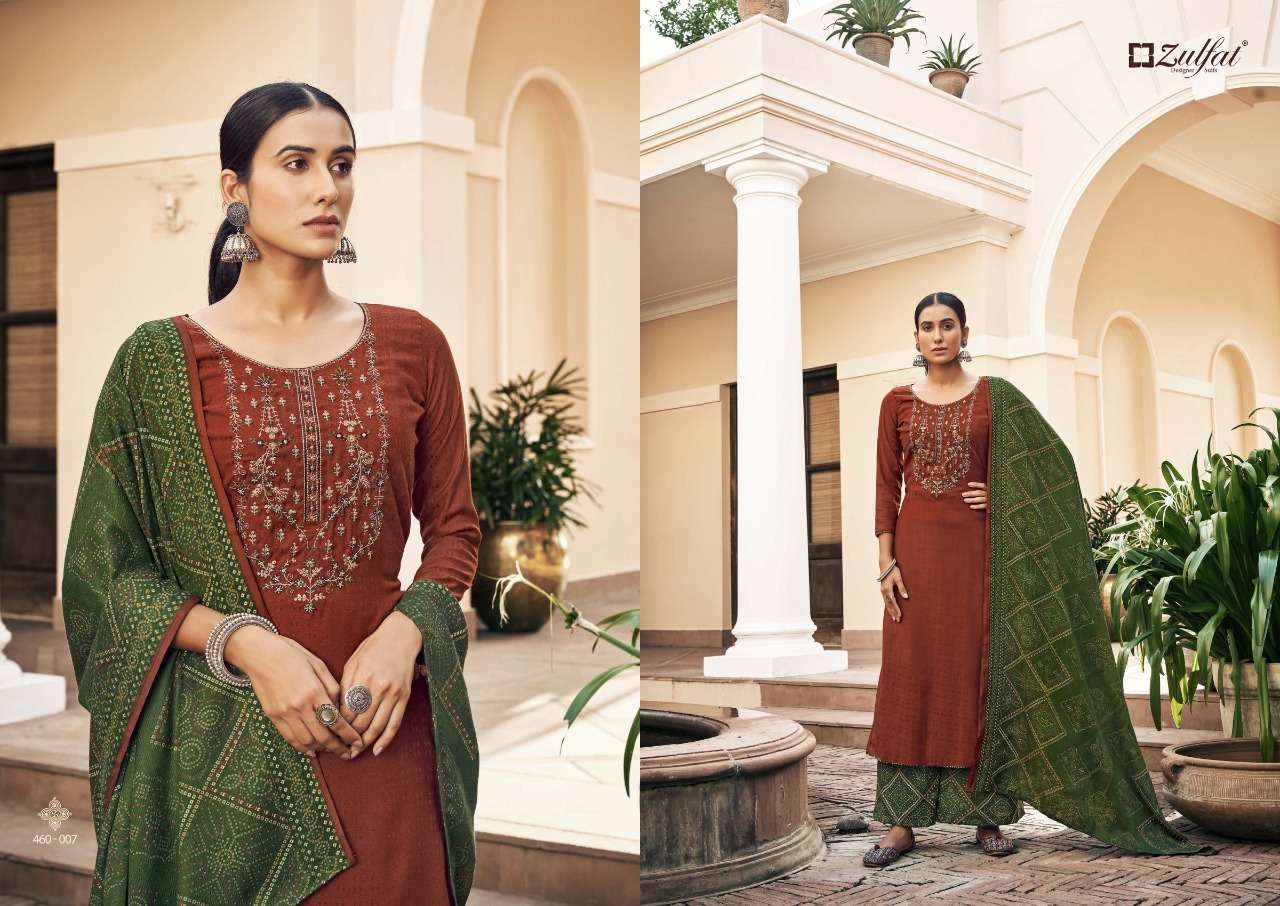 SOHNI 460 SERIES BY ZULFAT DESIGNER WITH PRINTED WOOL PASHMINA SUITS ARE AVAILABLE AT WHOLESALE PRICE