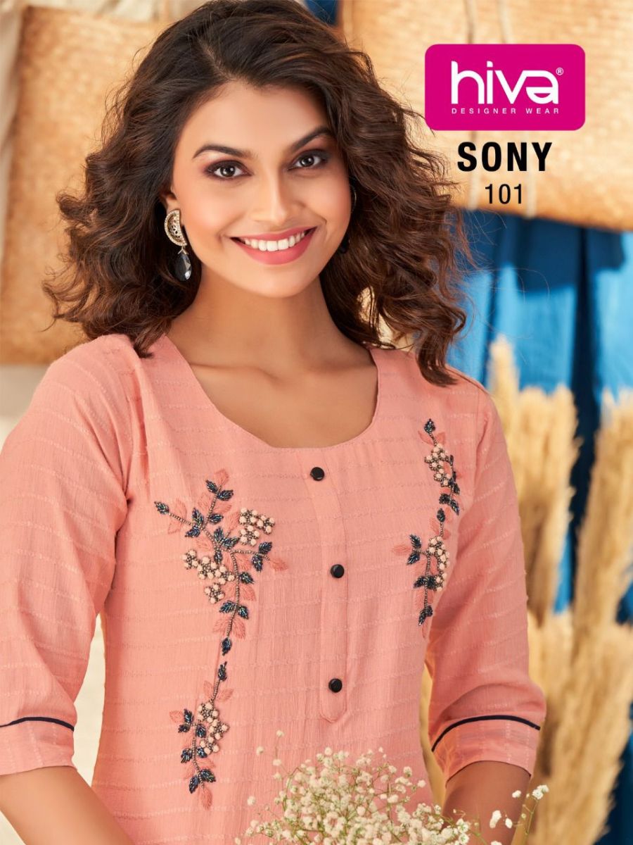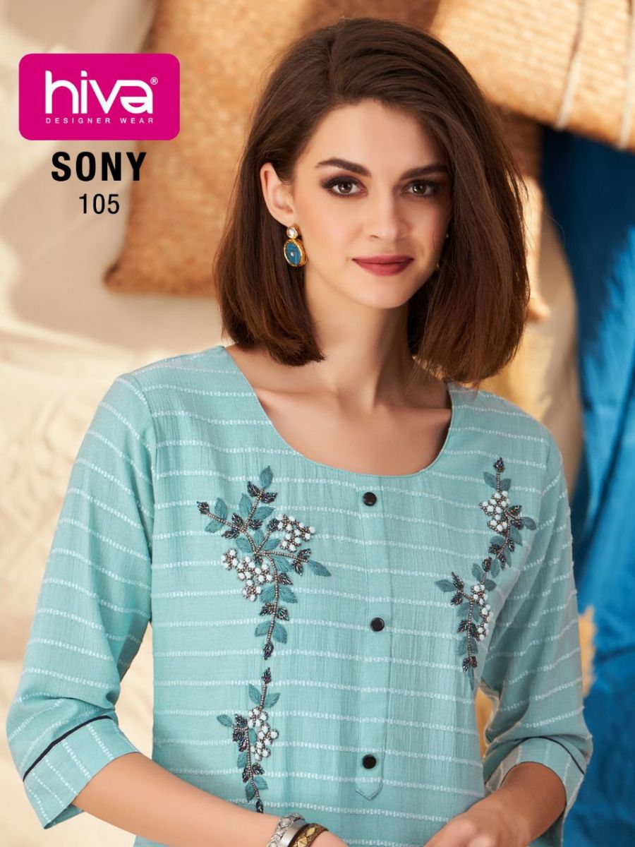 Sony Kurti By Hiva Designer With Embroidery Work Fancy Casual Wear Long Kurtis Are Available At Wholesale Price