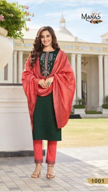 Sparkle Kurti By Manas Fab Designer With Work Chinon Kurti With Pant And Dupatta Are Available At Wholesale Price