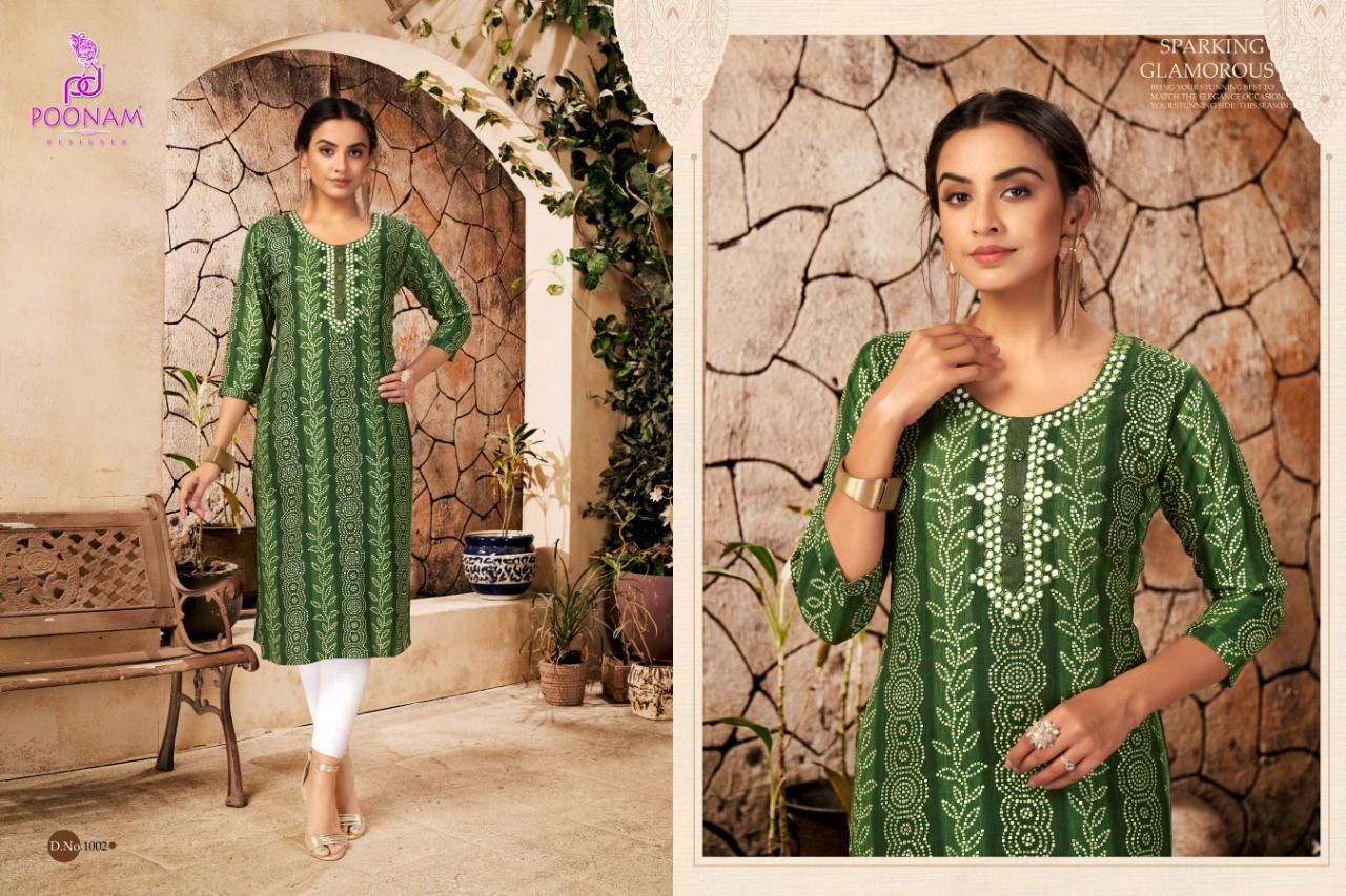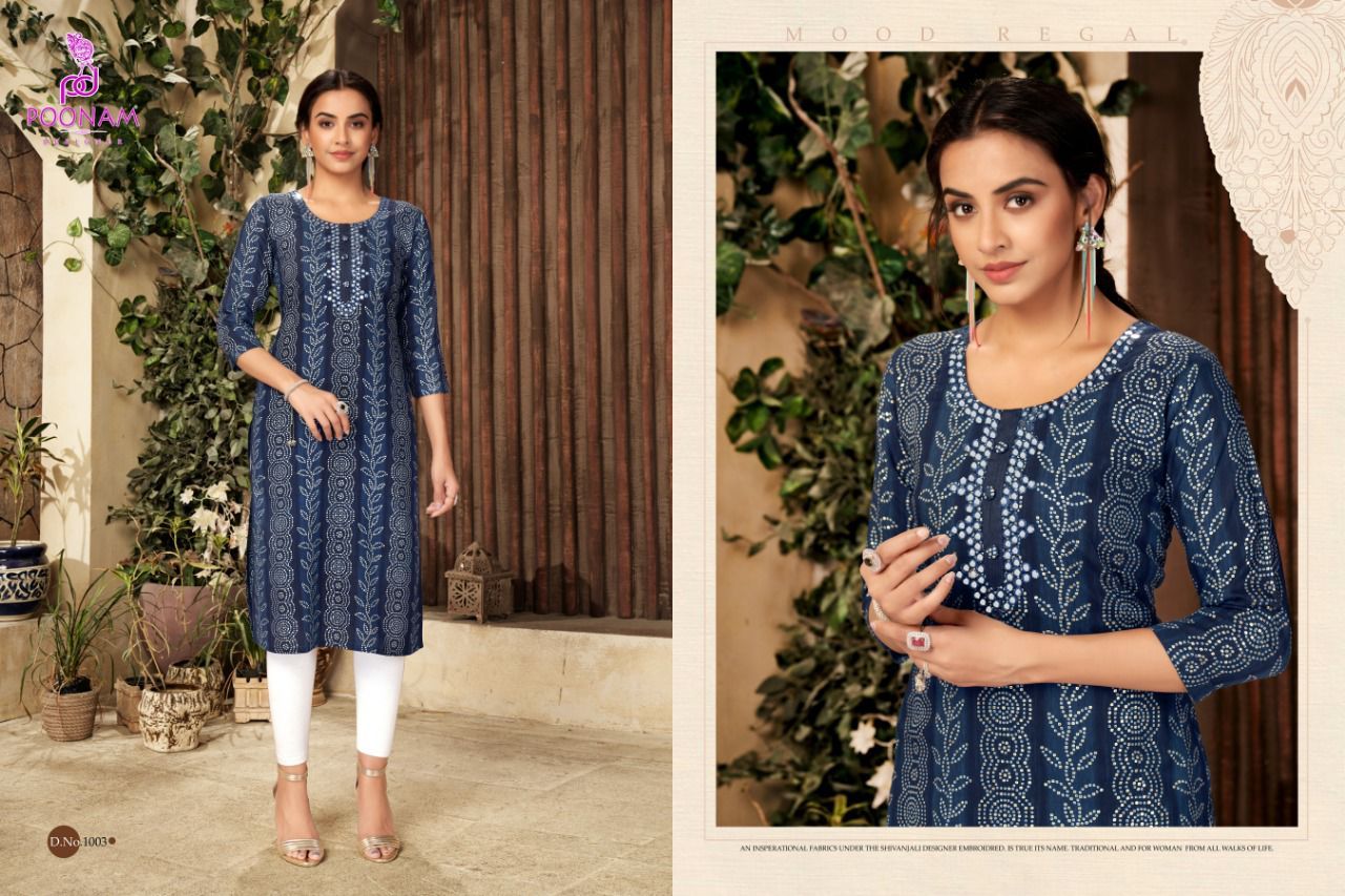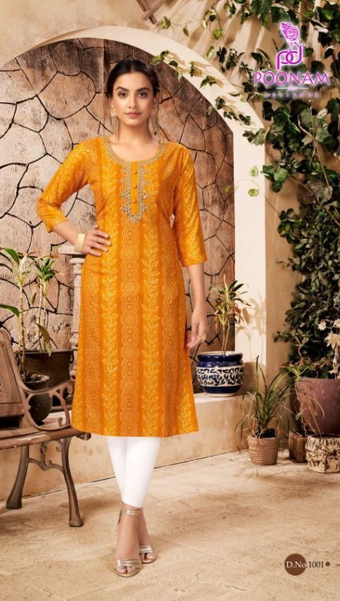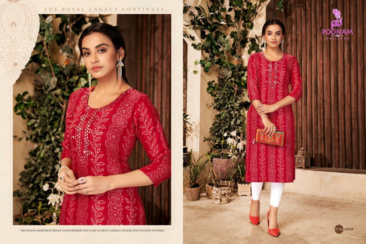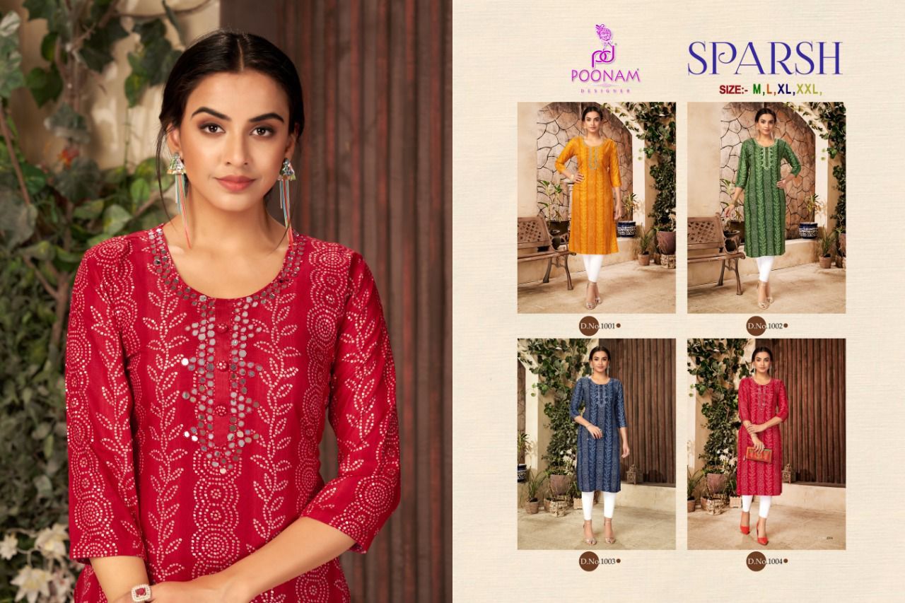 Sparsh Kurti By Poonam Designer With Printed And Work Rayon Long Kurtis Are Available At Wholesale Price