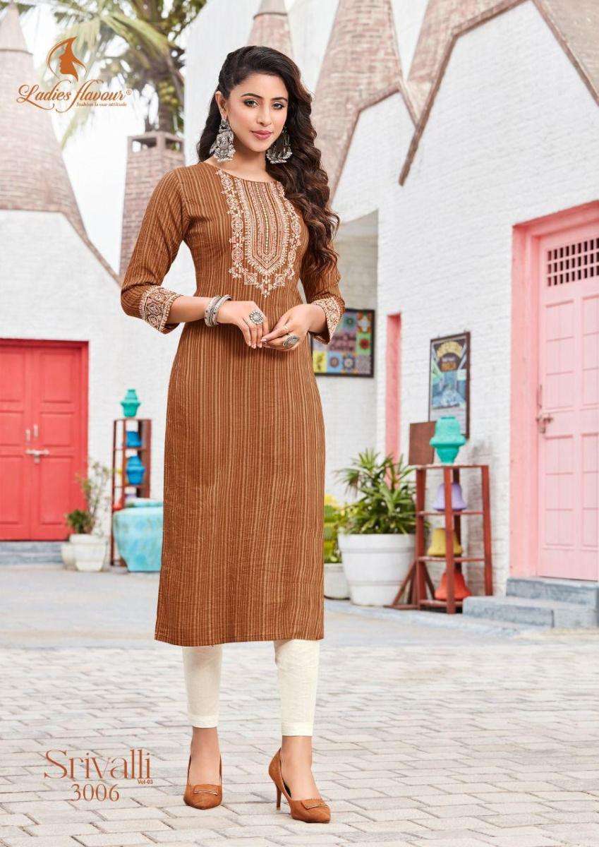 SRIVALLI VOL-3 KURTI BY LADIES FLAVOUR DESIGNER WITH EMBROIDERY WORK VISCOSE RAYON KURTIS ARE AVAILABLE AT WHOLESALE PRICE