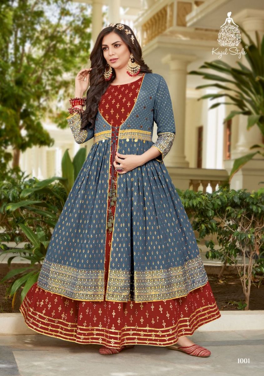 Srug Vol-1 By Kajal Style Designer With Printed And Work Cotton Gown With Shrug Are Available At Wholesale Price
