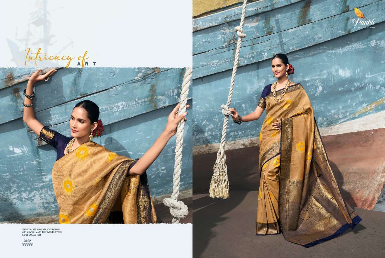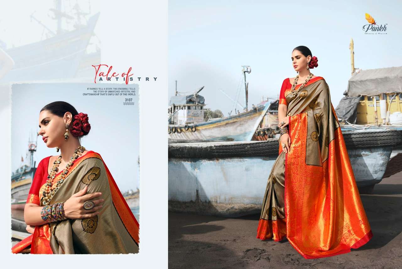 STUTI SILK SAREE BY PANKH DESIGNER BRIDAL WEAR SOFT SILK SAREES ARE AVAILABLE AT WHOLESALE PRICE