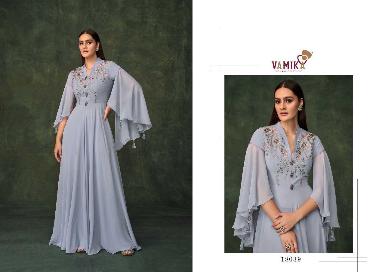 Sui Dhaga Vol-5 By Vamika Designer With Work Georgette Long Party Wear Gowns Are Available At Wholesale Price