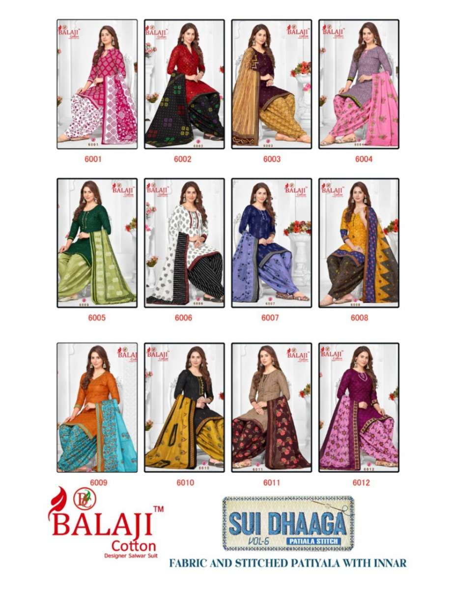SUI DHAGA VOL-6 BY BALAJI COTTON DESIGNER WITH PRINTED COTTON PATIYALA SUITS ARE AVAILABLE AT WHOLESALE PRICE