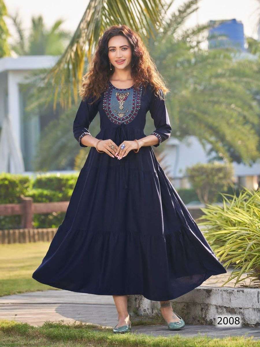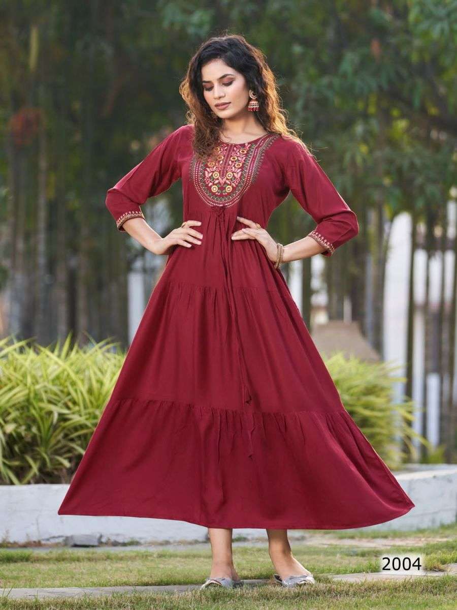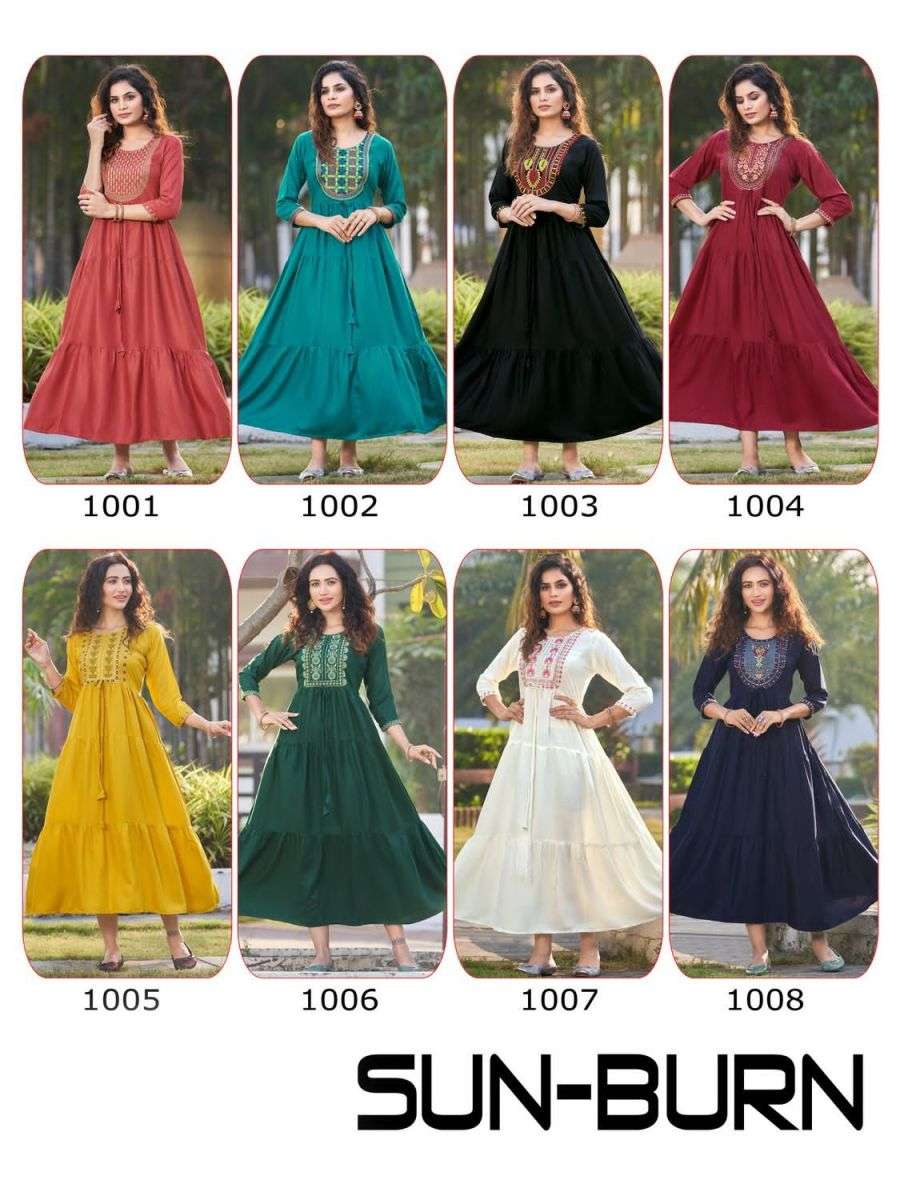 SUN BURN KURTI BY BLUE HILLS DESIGNER WITH WORK VISCOSE DOBBY GOWN STYLE KURTIS ARE AVAILABLE AT WHOLESALE PRICE