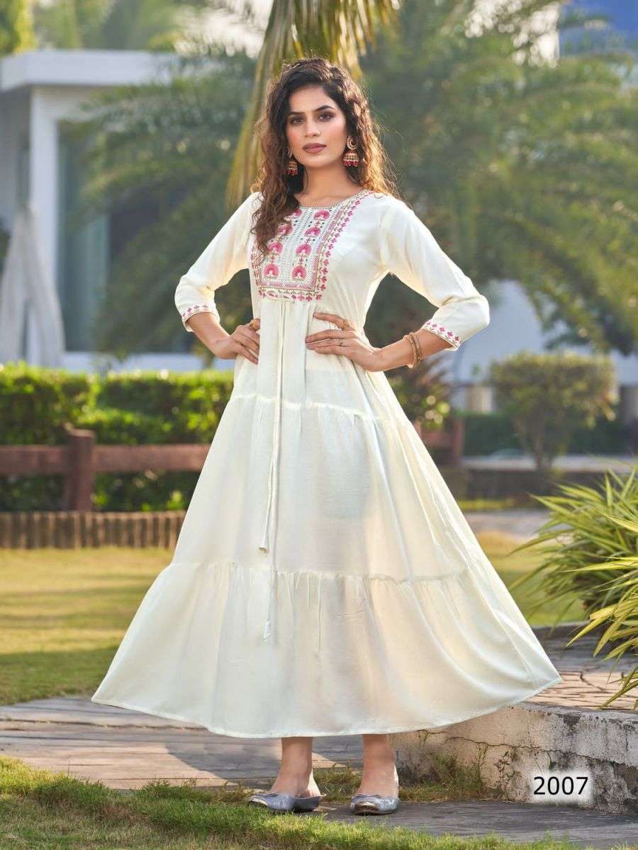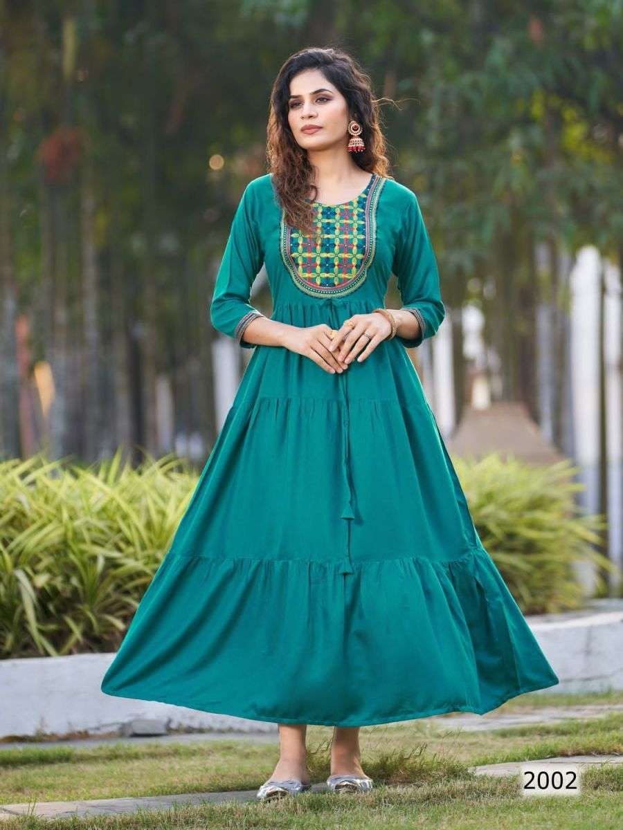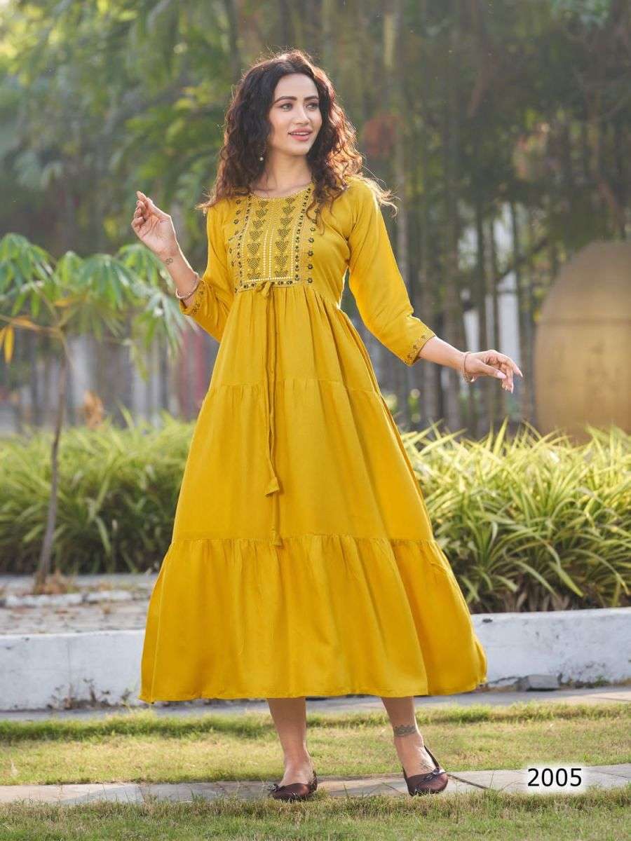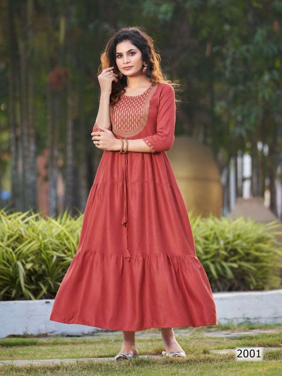SUN BURN KURTI BY BLUE HILLS DESIGNER WITH WORK VISCOSE DOBBY GOWN STYLE KURTIS ARE AVAILABLE AT WHOLESALE PRICE