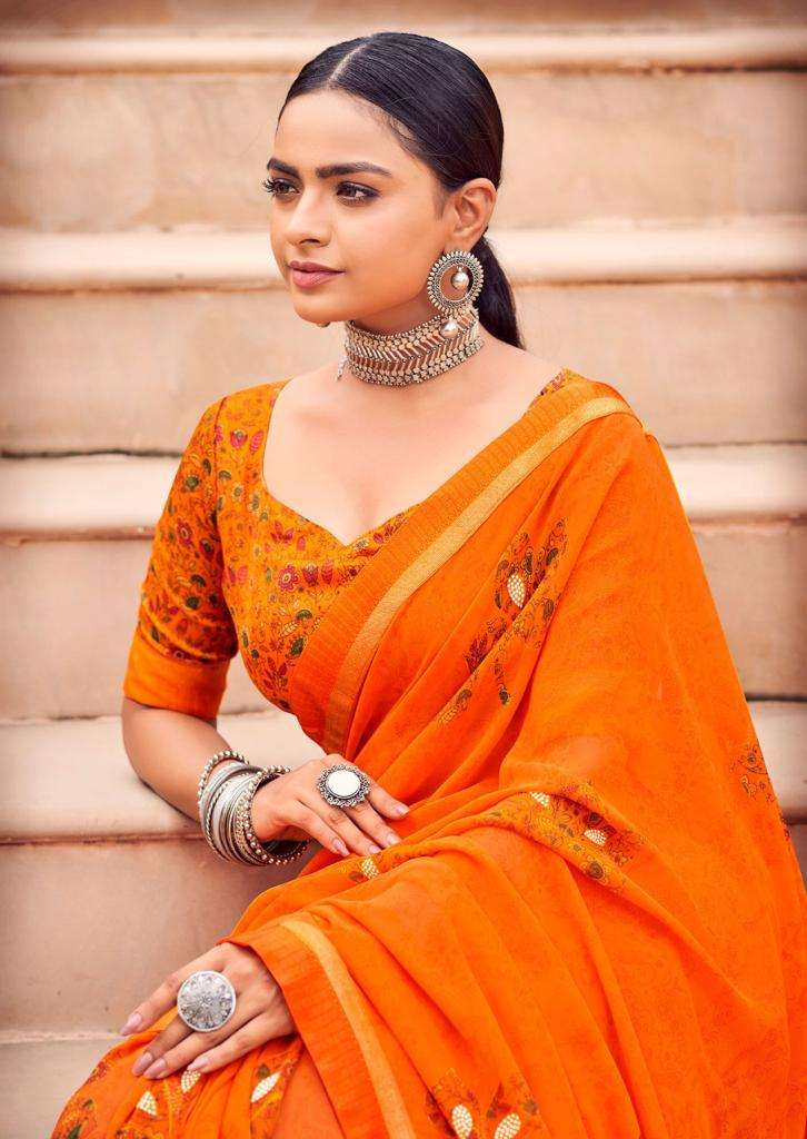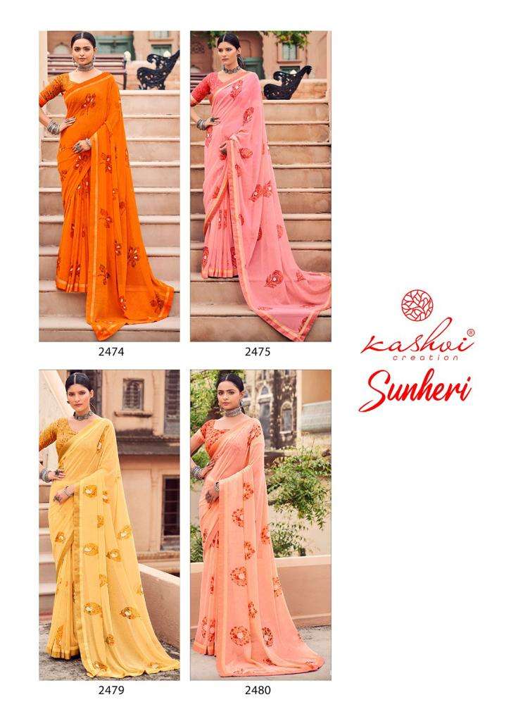 SUNHERI SAREE BY KASHVI LT DESIGNER WITH WORK GEORGETTE SAREES ARE AVAILABLE AT WHOLESALE PRICE