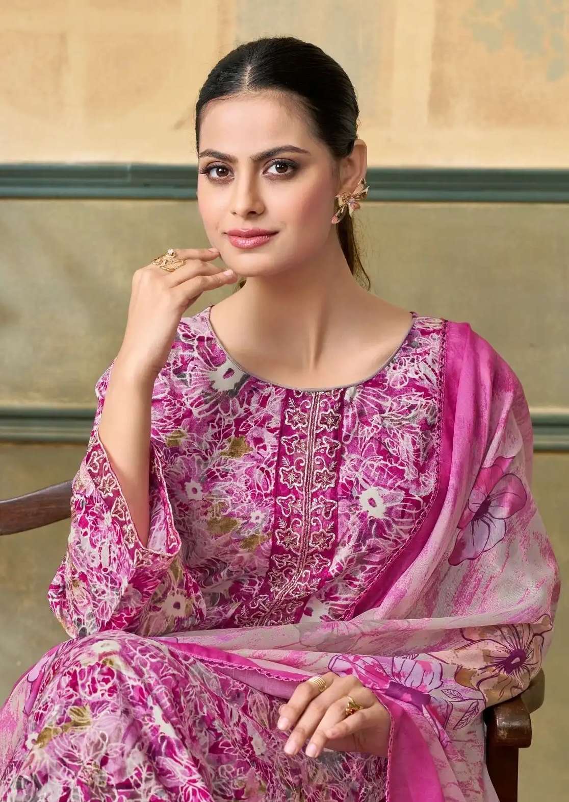 TOP - Premium Reyon Print With Neck & Daman Embroidery With Sleeve Work (Cut : 2.50 Mtr Apx)