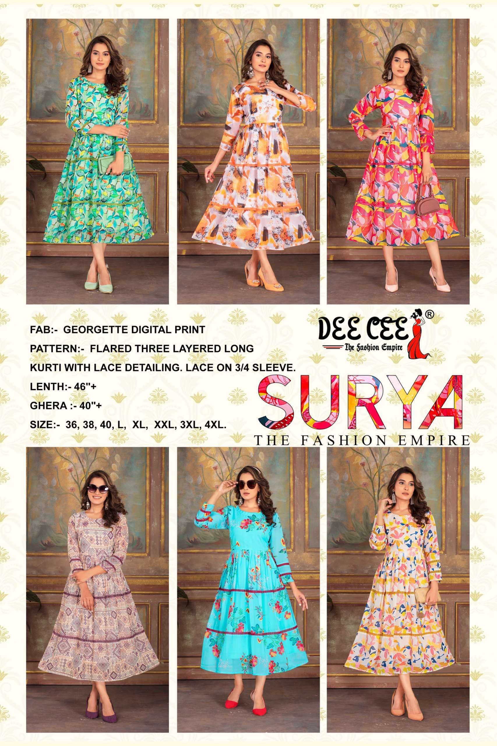 | Name: | dee cee-SURYA SERIES 101 TO 106 KURTI BY DEE CEE |