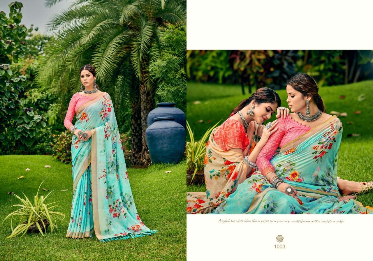 SUWARNA SAREE BY SAROJ DESIGNER WITH PRINTED RIMJHIM SAREES ARE AVAILABLE AT WHOLESALE PRICE