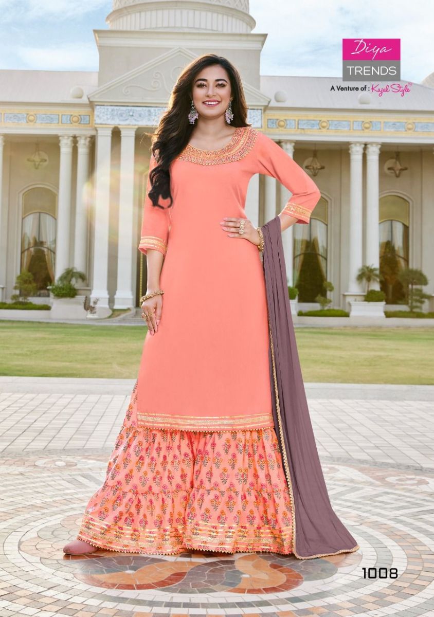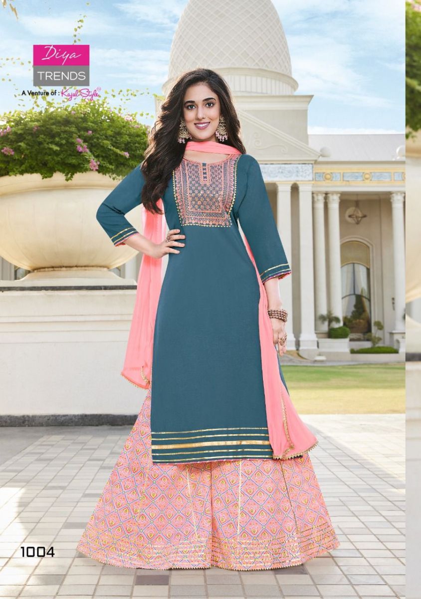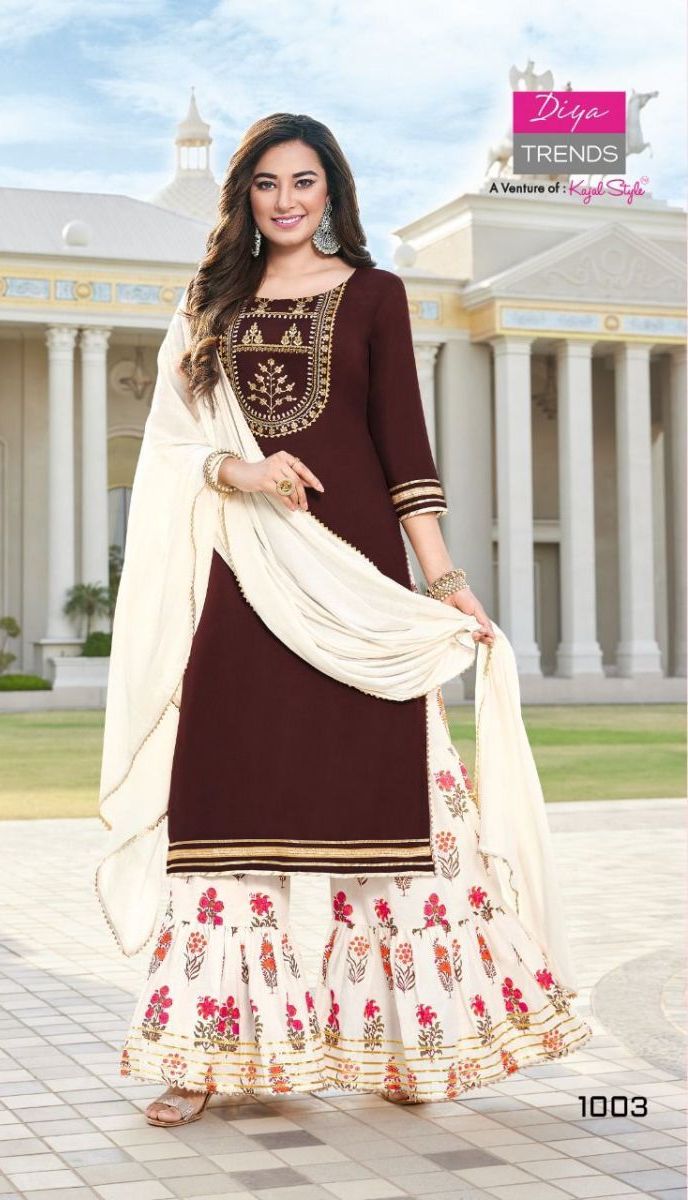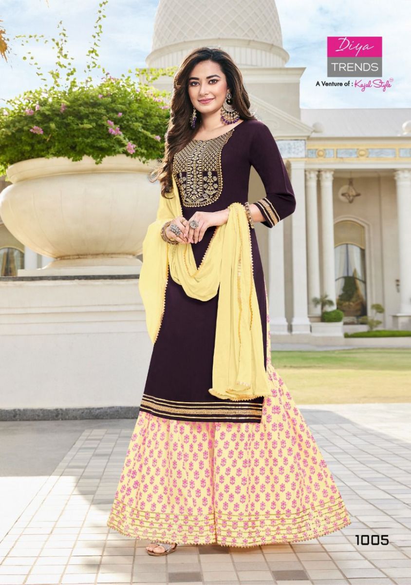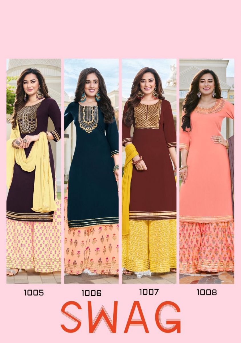 Swag Vol-1 By Diya Trends Designer With Printed Rayon Kurti With Sharara And Dupatta Are Available At Wholesale Price