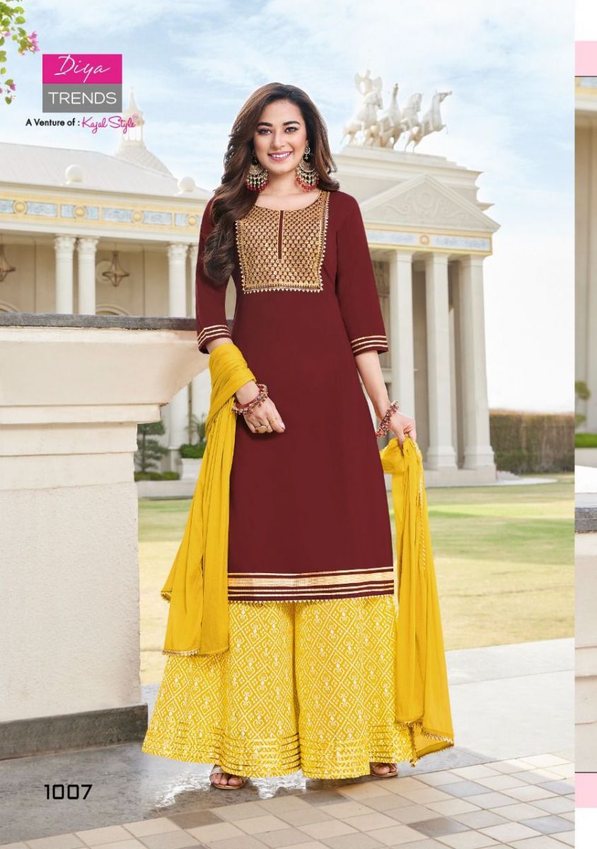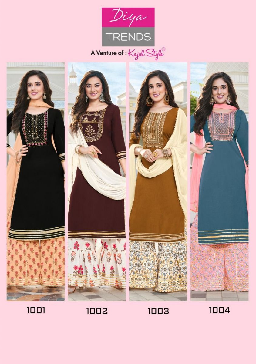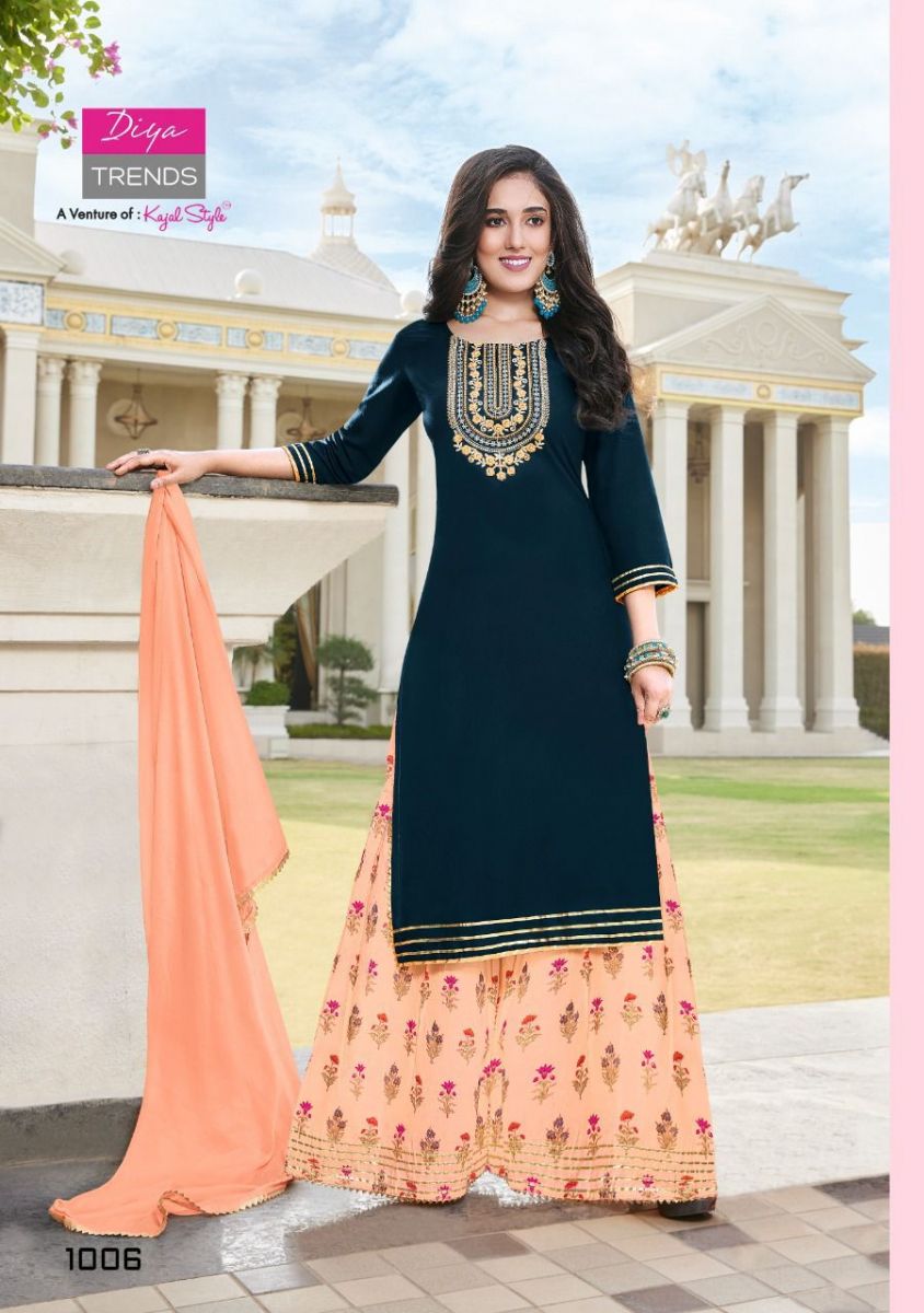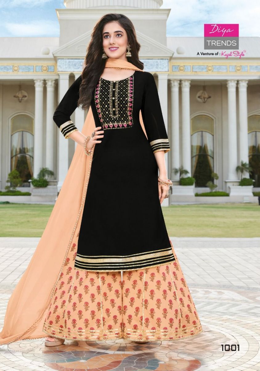 Swag Vol-1 By Diya Trends Designer With Printed Rayon Kurti With Sharara And Dupatta Are Available At Wholesale Price