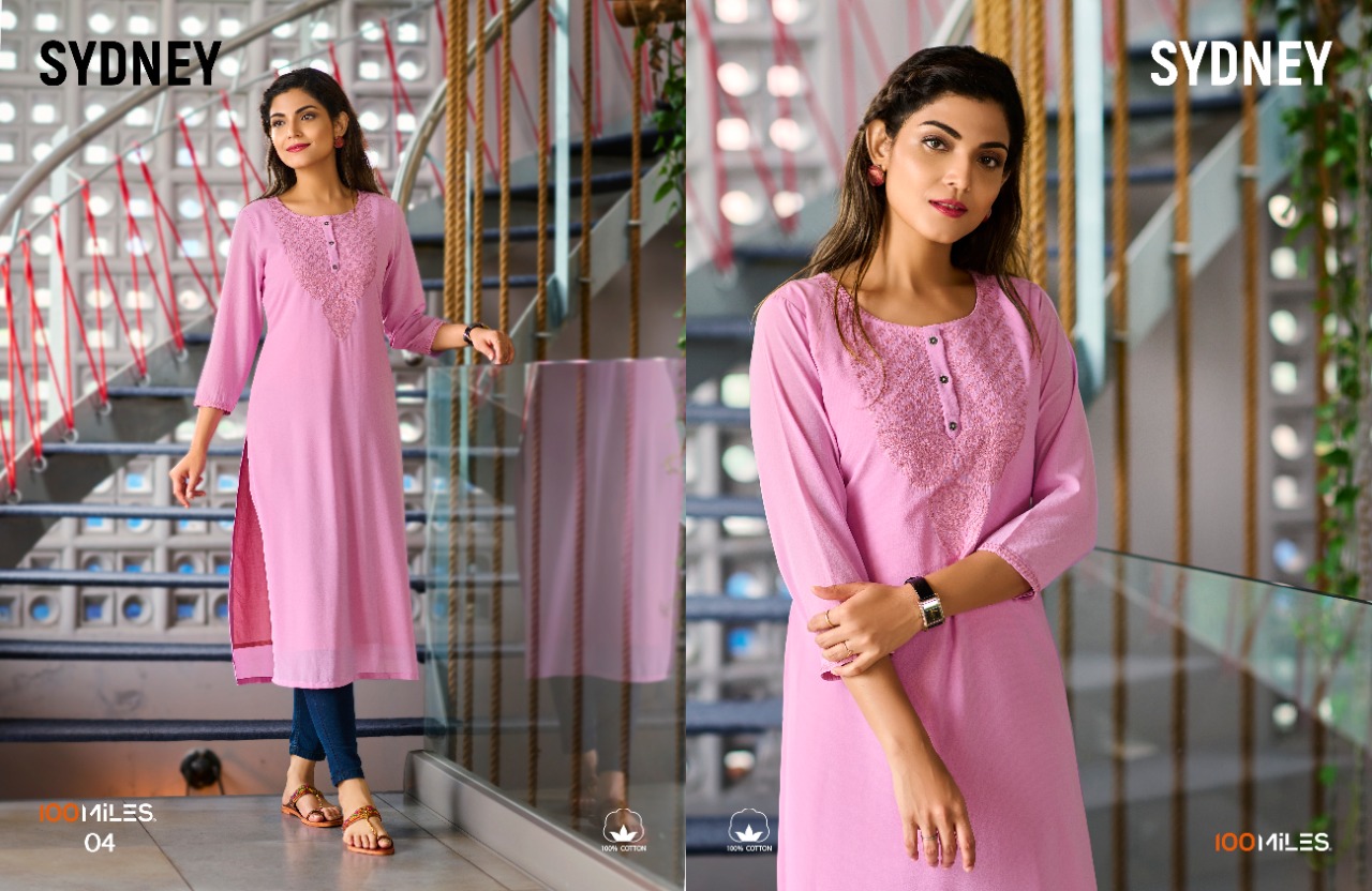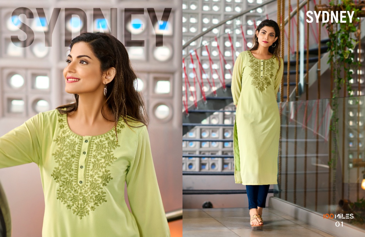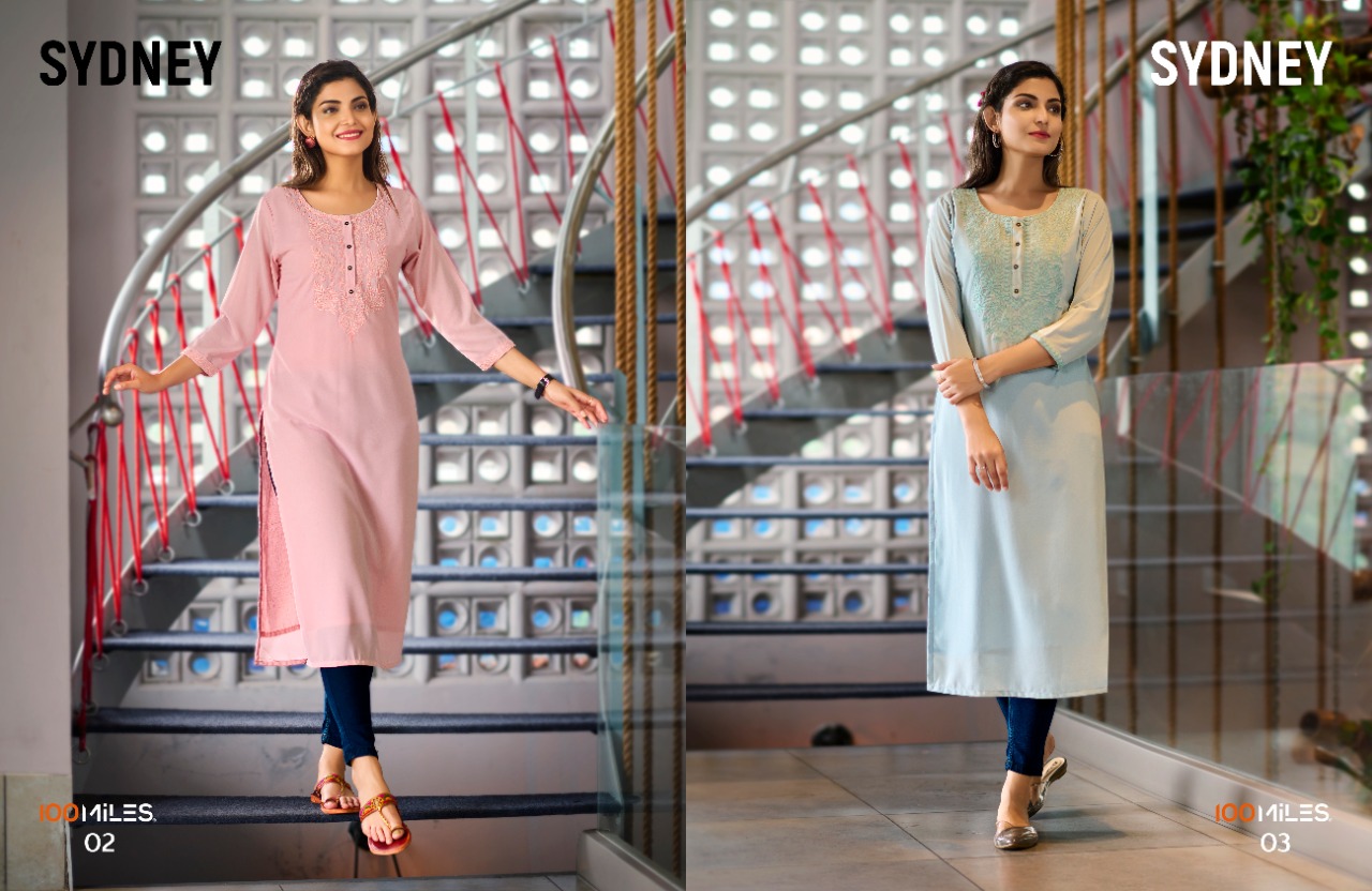Sydney Kurti By 100 Miles Designer With Embroidery Work Georgette Long Casual Wear Kurtis Are Available At Wholesale Price