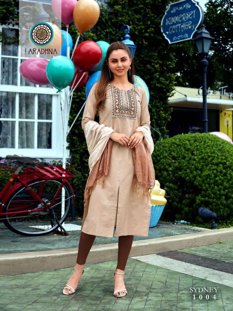 SYDNEY VOL-1 KURTI BY ARADHANA DESIGNER WITH EMBROIDERY WORK COTTON KURTI WITH DUPATTA ARE AVAILABLE AT WHOLESALE PRICE