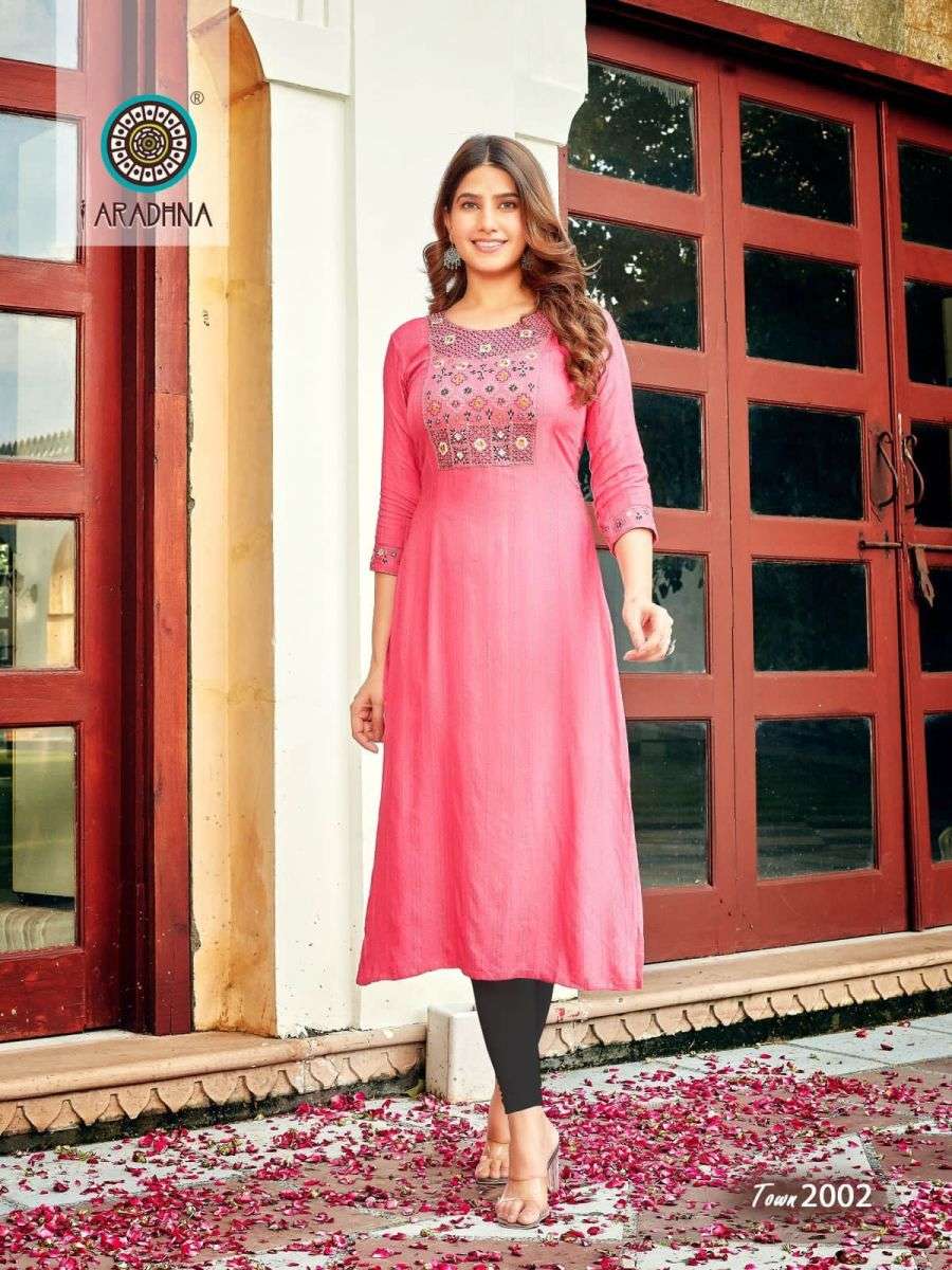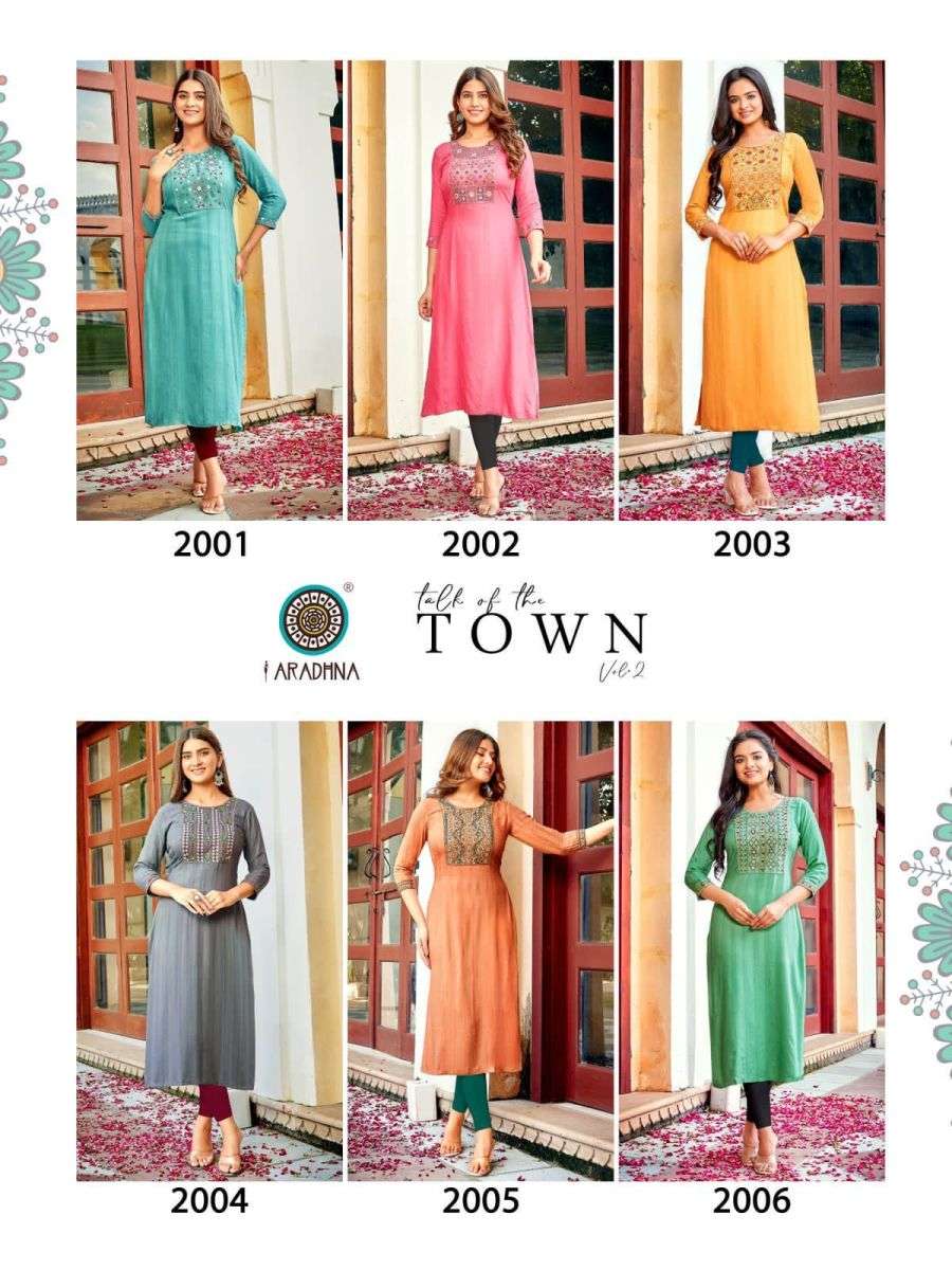 TALK OF THE TOWN VOL-2 KURTI BY ARADHANA DESIGNER WITH WORK VISCOSE KURTIS ARE AVAILABLE AT WHOLESALE PRICE