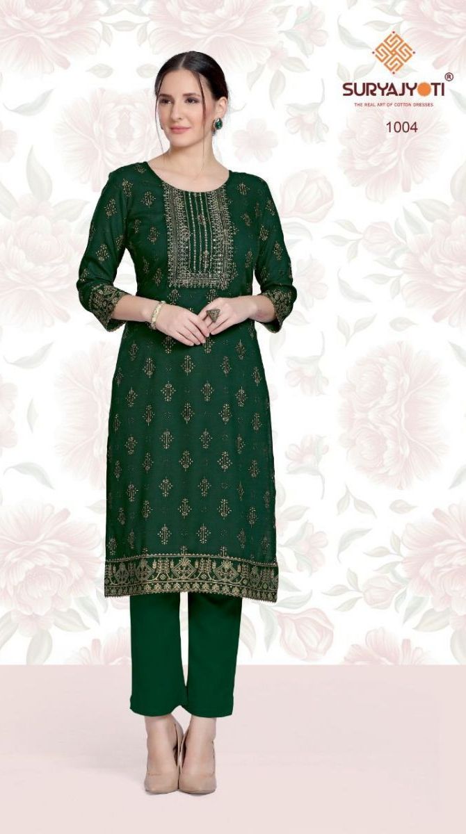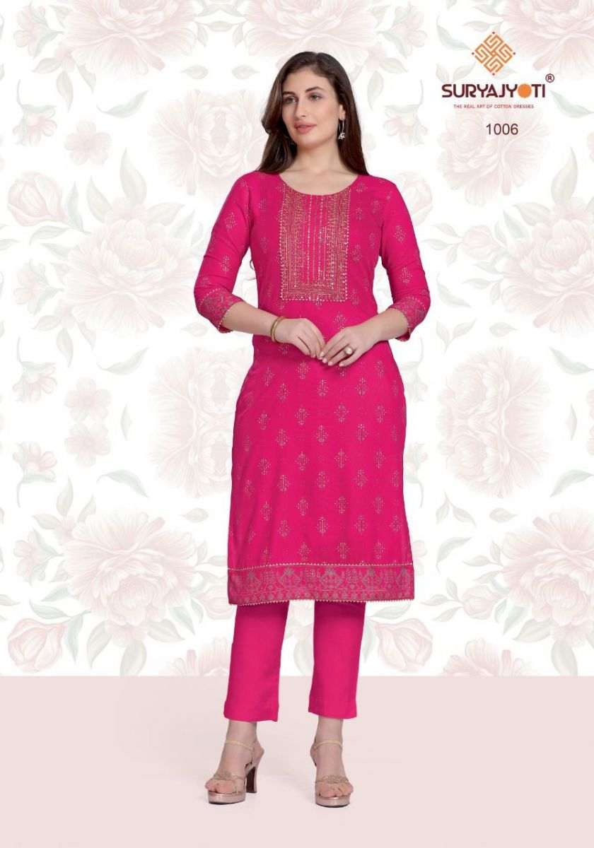 Tara Vol-1 Kurti By Suryajyoti Designer With Work And Printed Rayon Cotton Kurti With Bottom Are Available At Wholesale Price