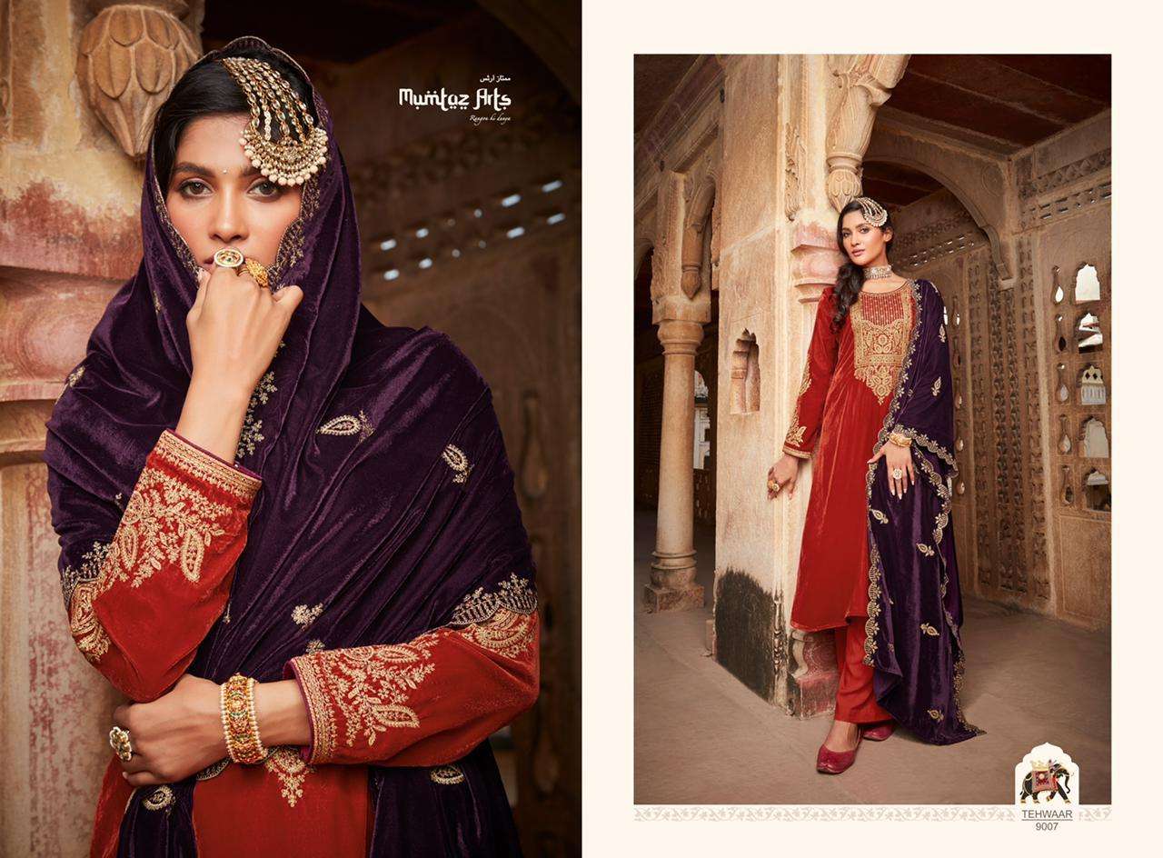 TEHWAAR BY MUMTAZ ARTS DESIGNER WITH EMBROIDERY WORK VELVET SUITS ARE AVAILABLE AT WHOLESALE PRICE