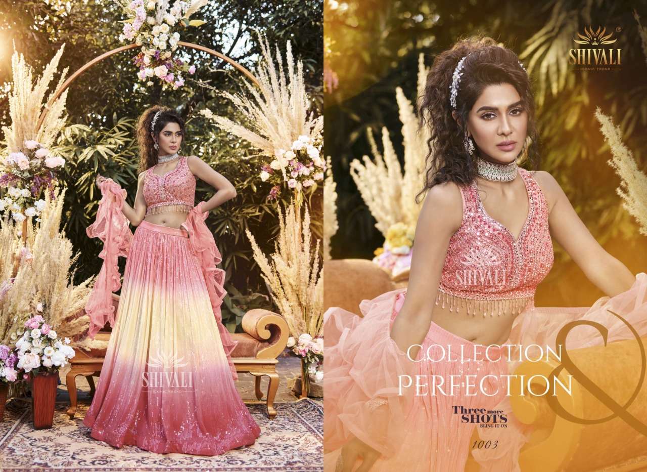 THREE MORE SHOTS LEHENGA BY SHIVALI DESIGNER WITH HEAVY WORK PARTY WEAR READYMADE LEHENGA CHOLI ARE AVAILABLE IN SINGLES AT WHOLESALE PRICE