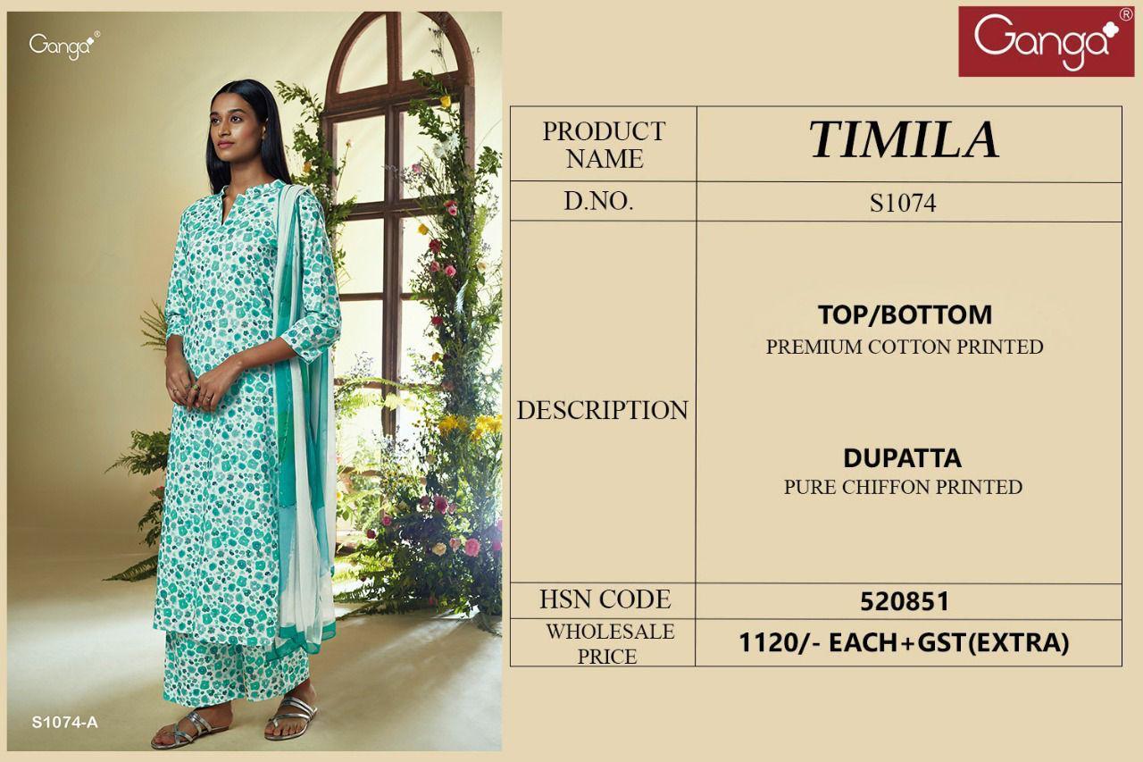 Timila S1074 By Ganga Designer With Printed Cotton Suits Are Available At Wholesale Price
