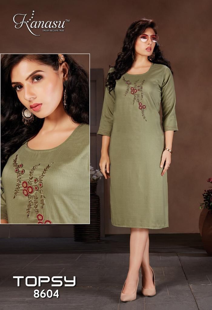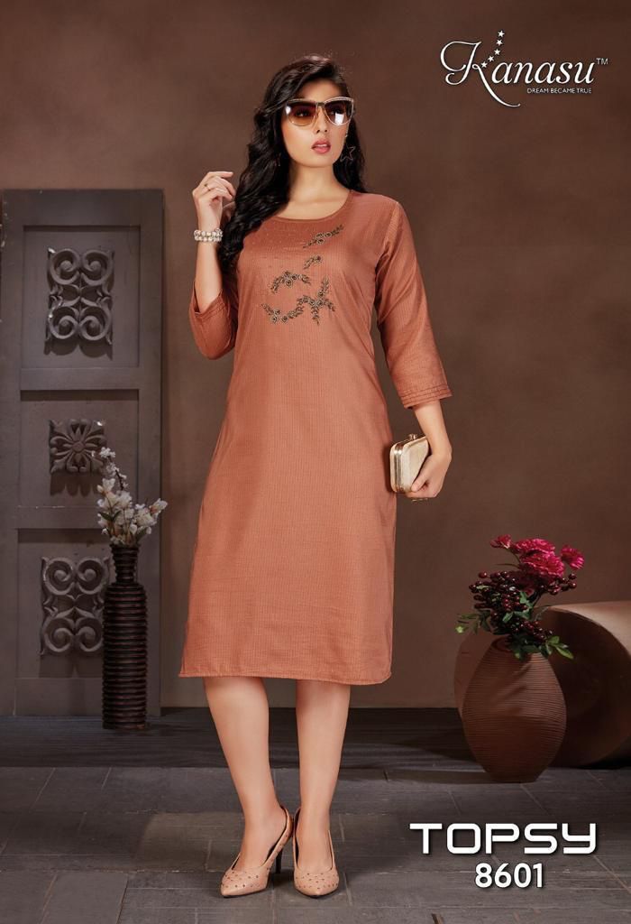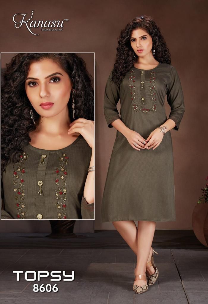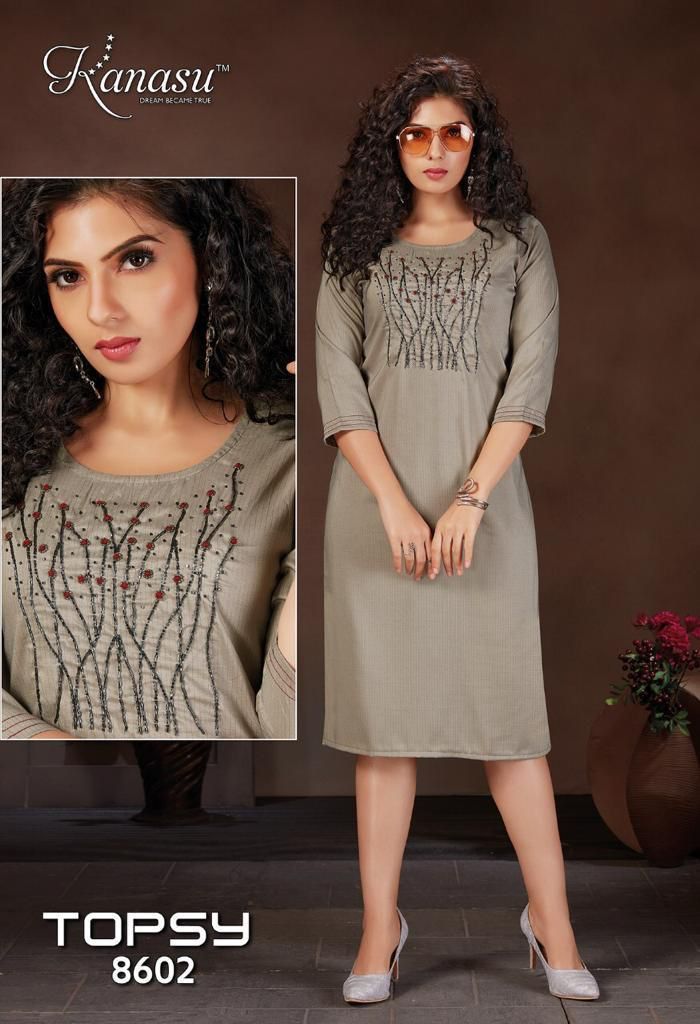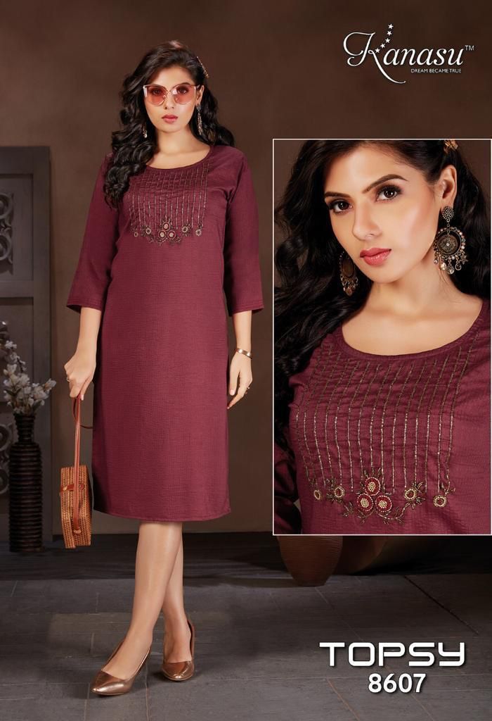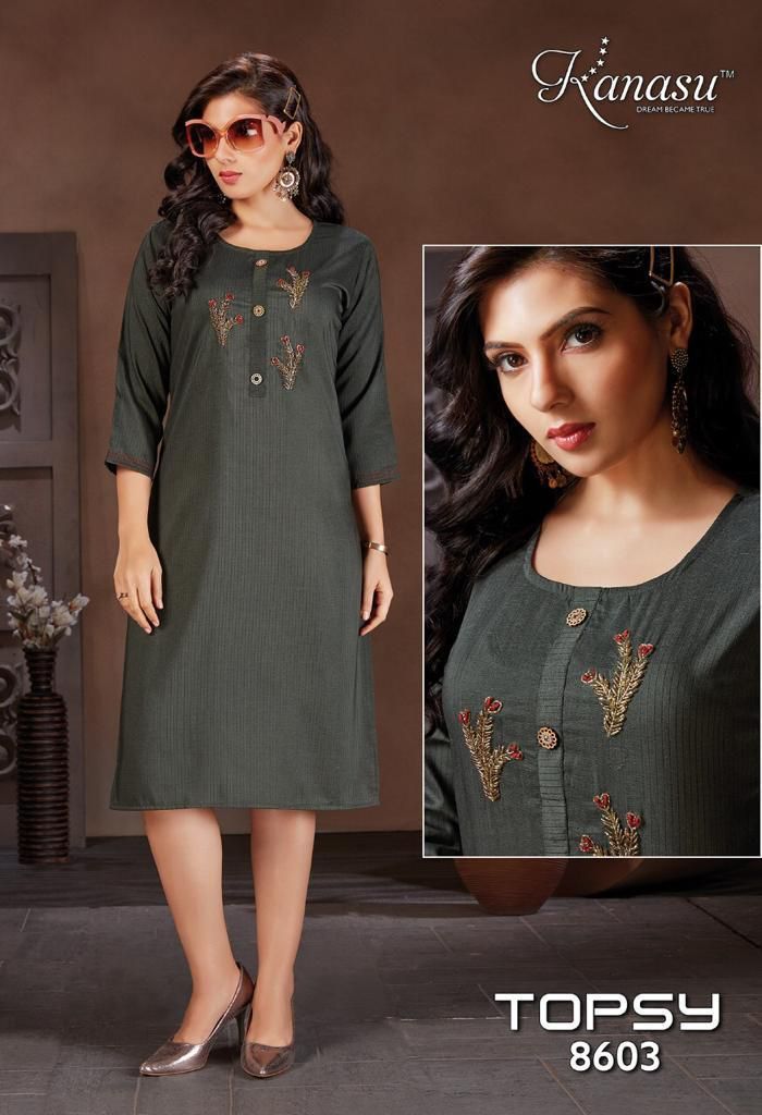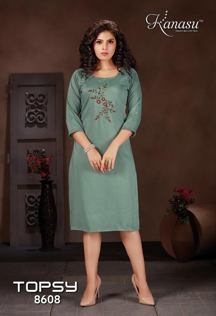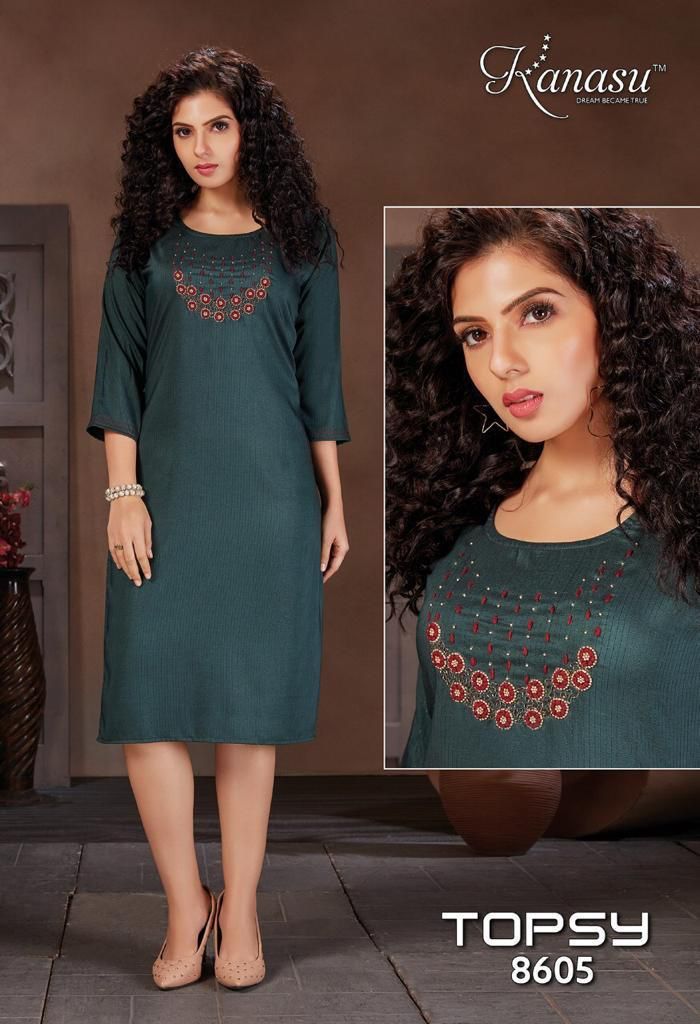 Topsy Kurti By Kanasu Designer With Embroidery Work Viscose Kurtis Are Available At Wholesale Price