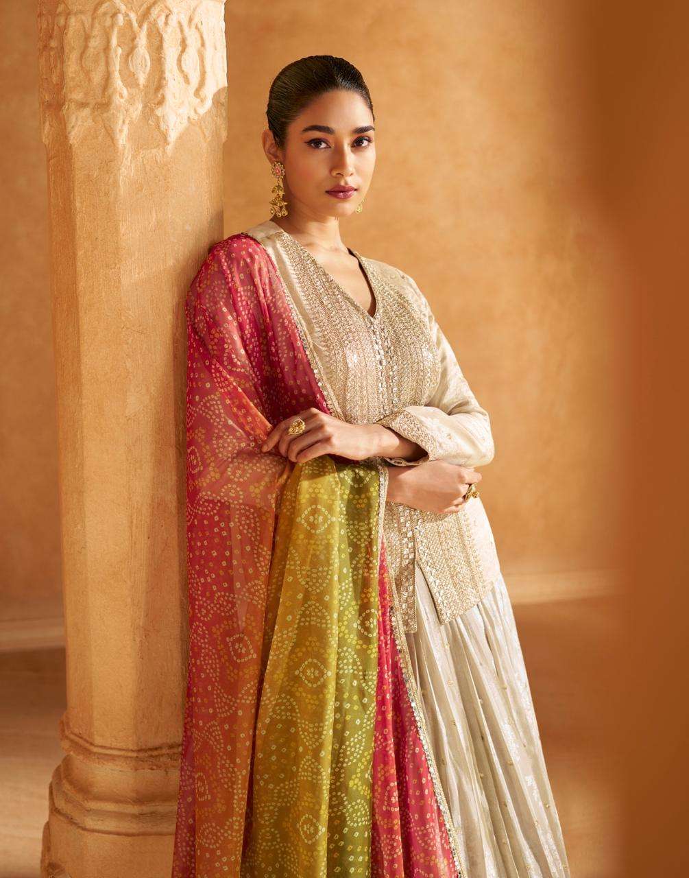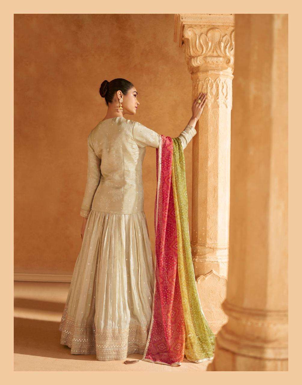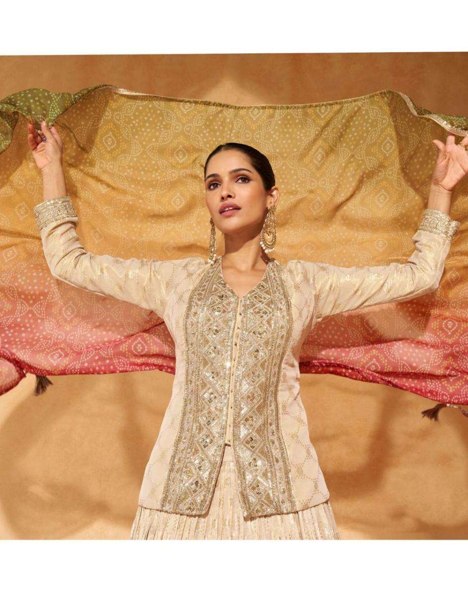 FABRIC - PURE SHIMMER VISCOSE JACQUARD SILK (FRONT AND BACK EMBROIDERED WITH CANCAN)