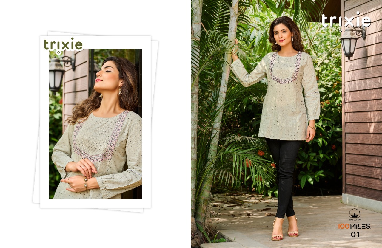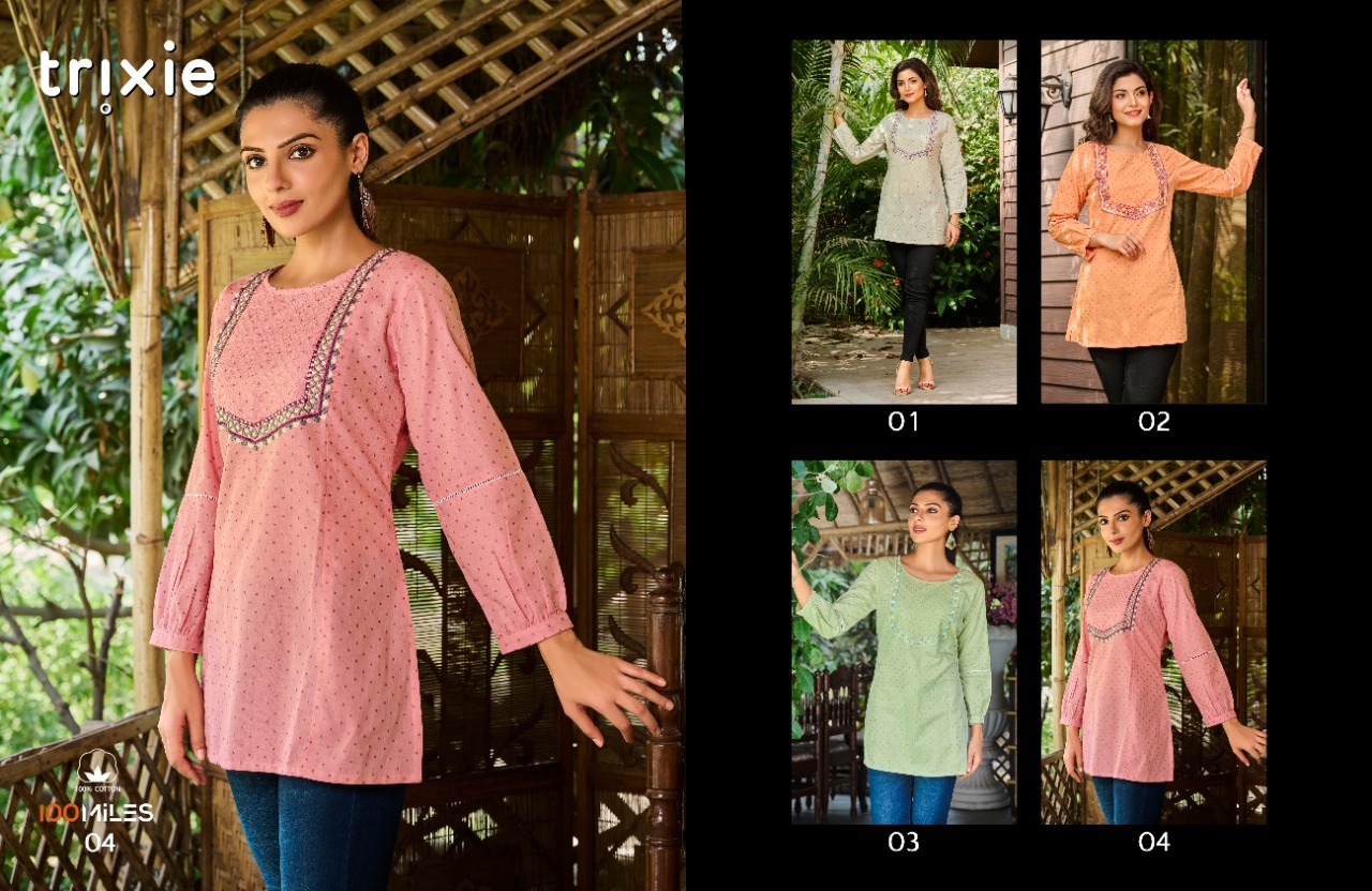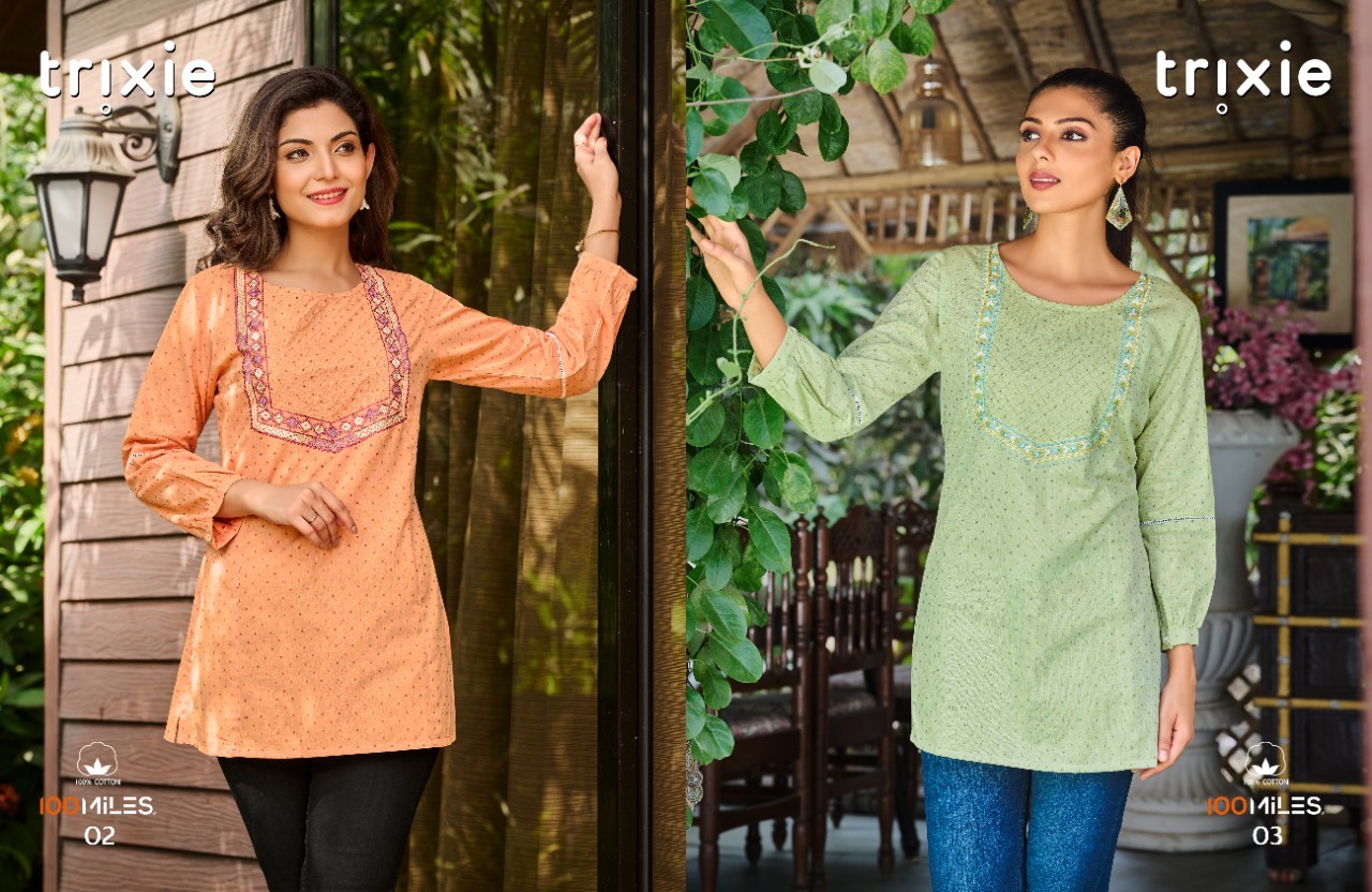 Trixie Top By 100 Miles Designer With Embroidery Work Pure Cotton Tops Are Available At Wholesale Price