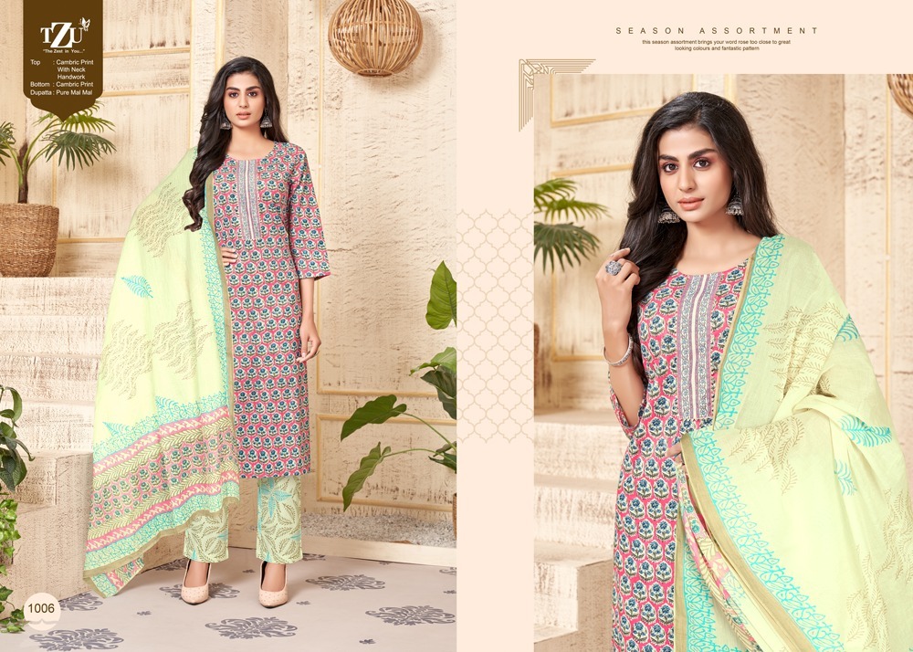 Umazia Kurti By Tzu Designer With Printed Cambric Cotton Kurti With Bottom And Dupatta Are Available At Wholesale Price