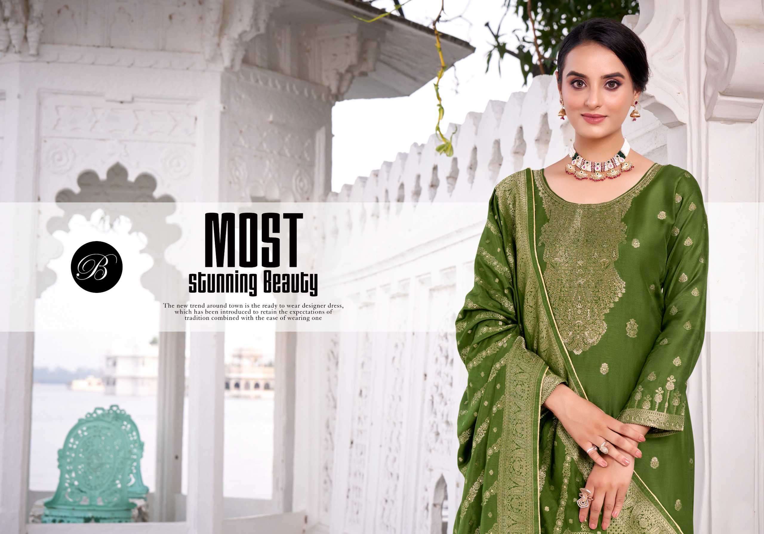 TOP - 100% Pure Viscose Dola Silk Jaquard WITH SWAROVSKI WORK (3.10 Mtrs Apx)