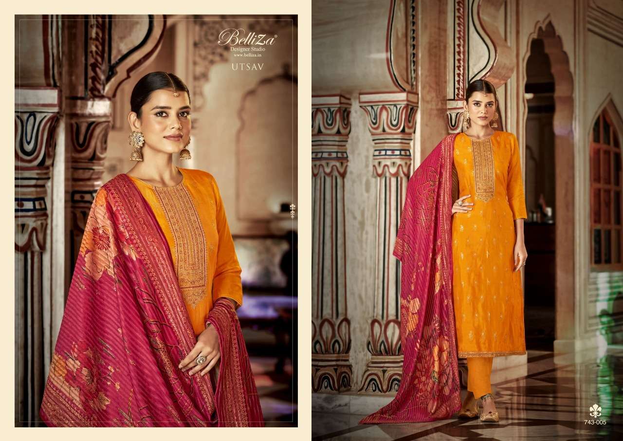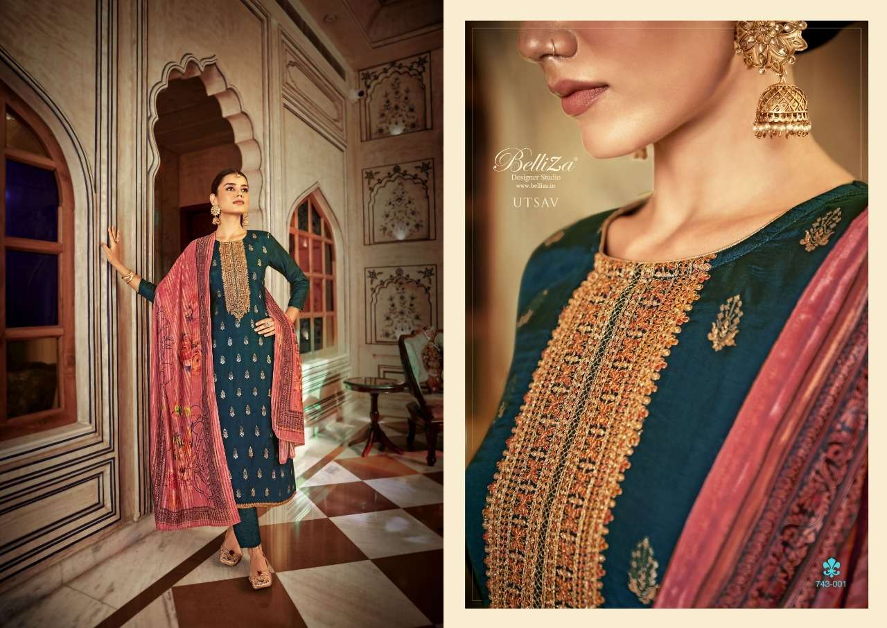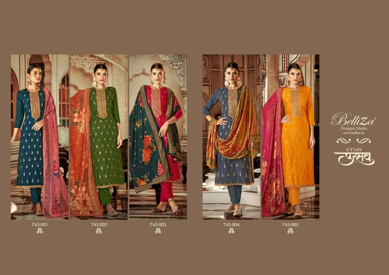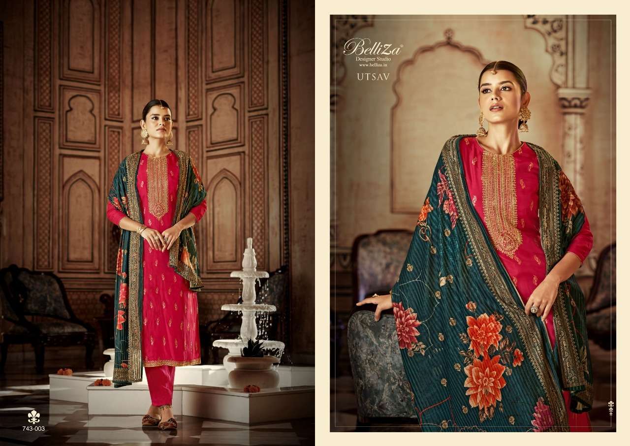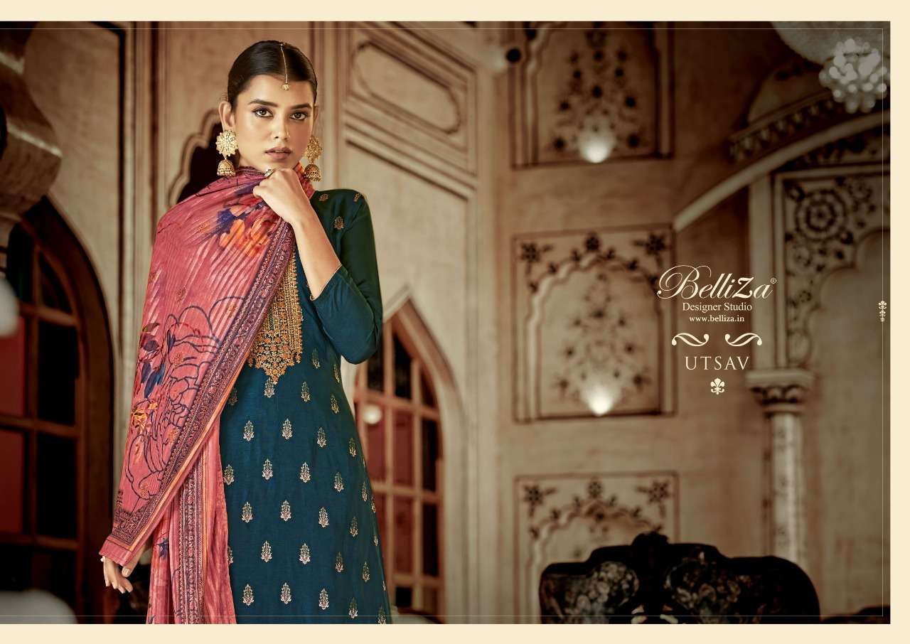 UTSAV BY BELLIZA DESIGNER WITH WORK VISCOSE DOLA JACQUARD SUITS ARE AVAILABLE AT WHOLESALE PRICE