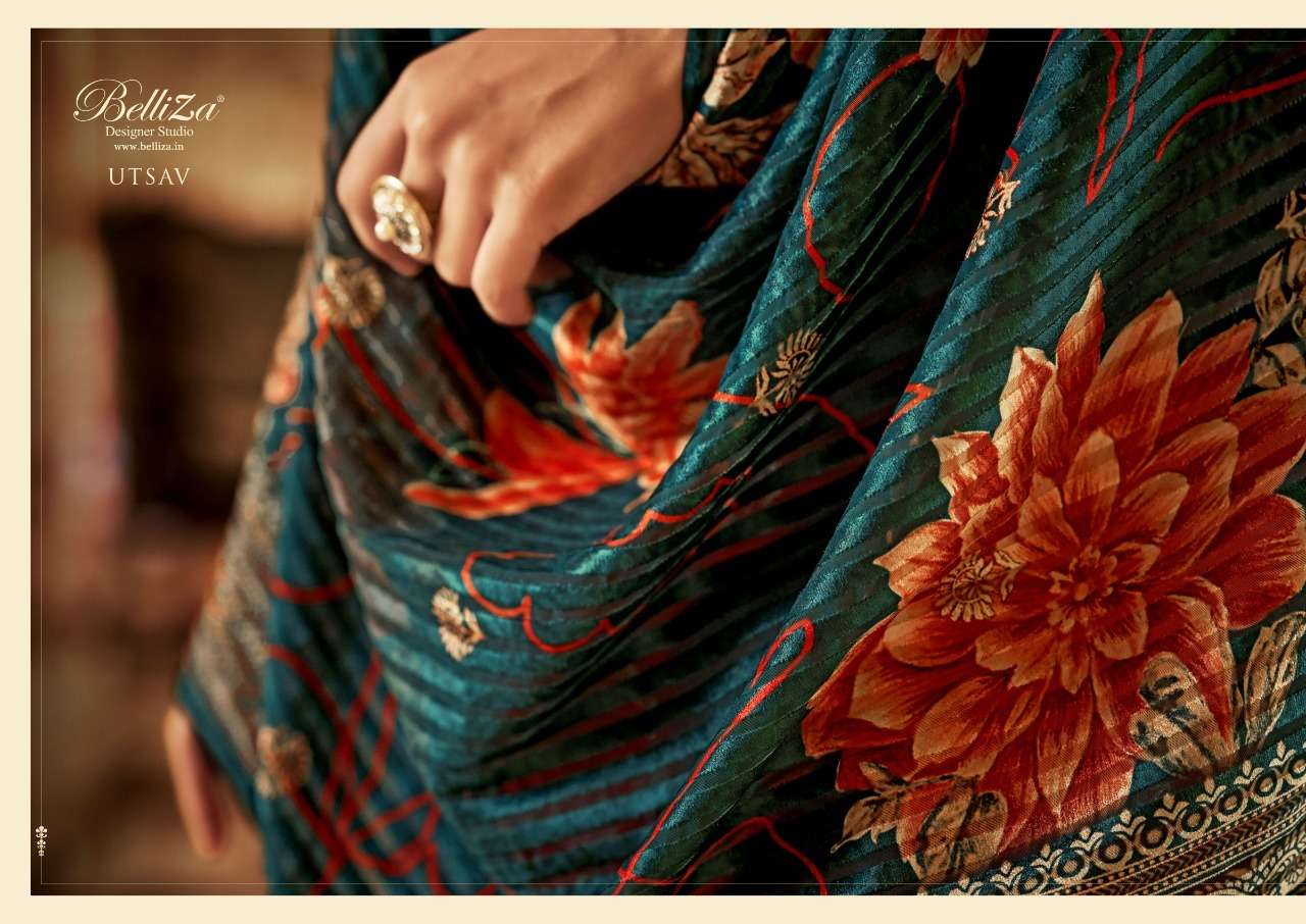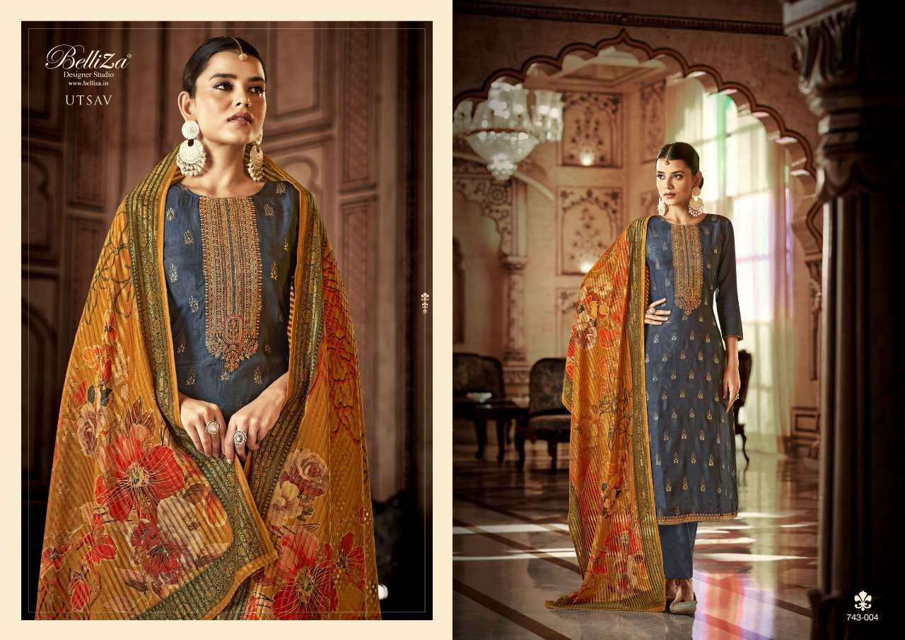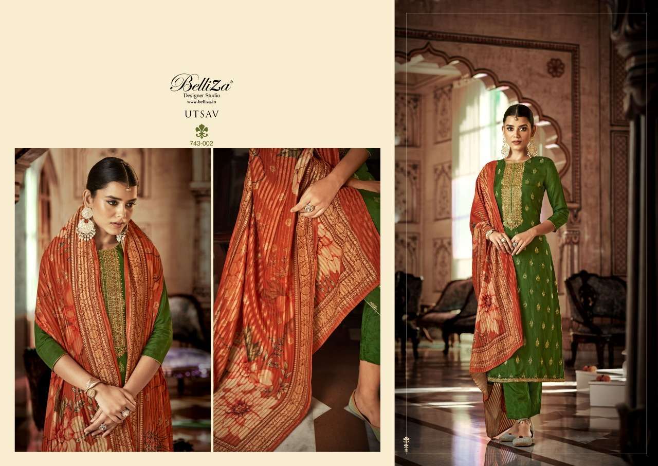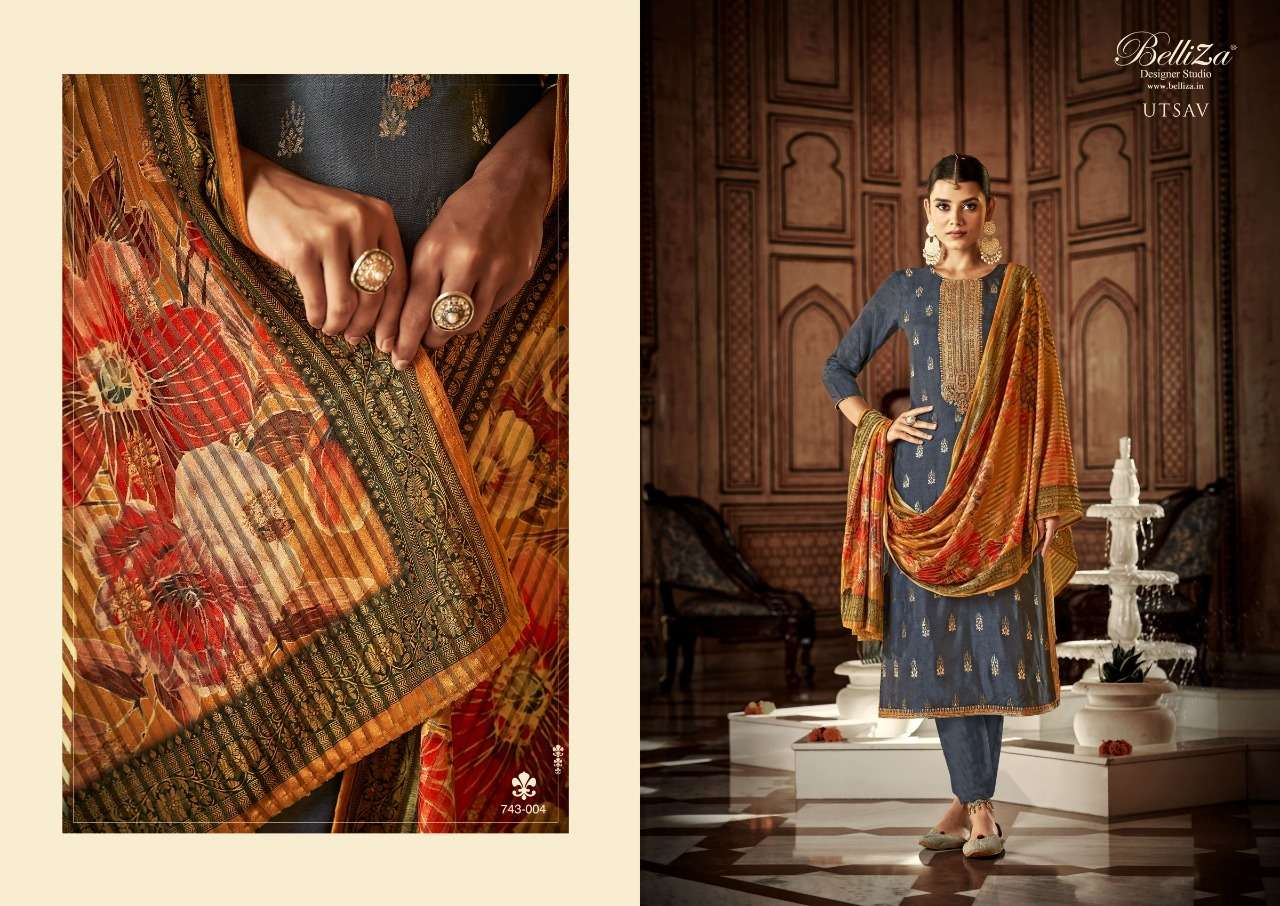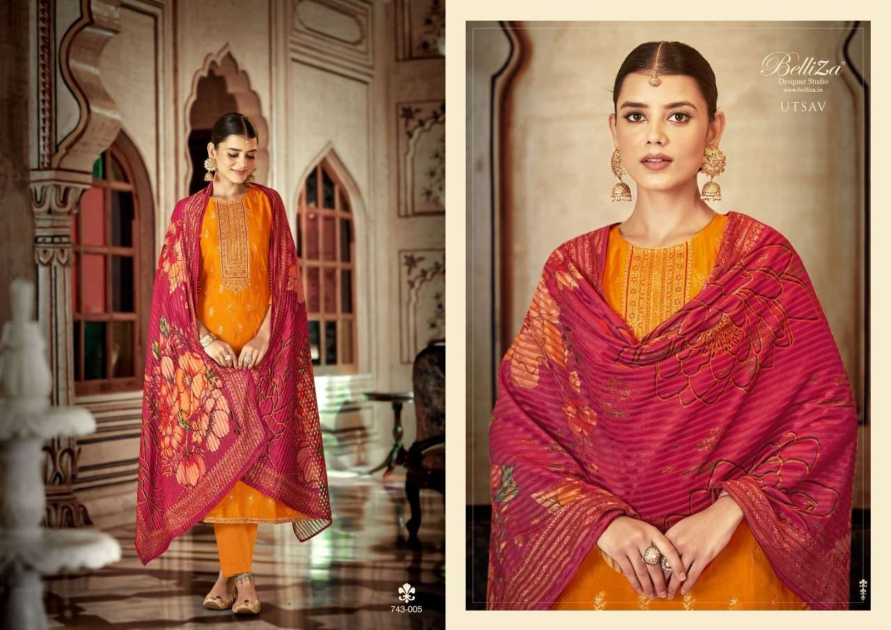 UTSAV BY BELLIZA DESIGNER WITH WORK VISCOSE DOLA JACQUARD SUITS ARE AVAILABLE AT WHOLESALE PRICE