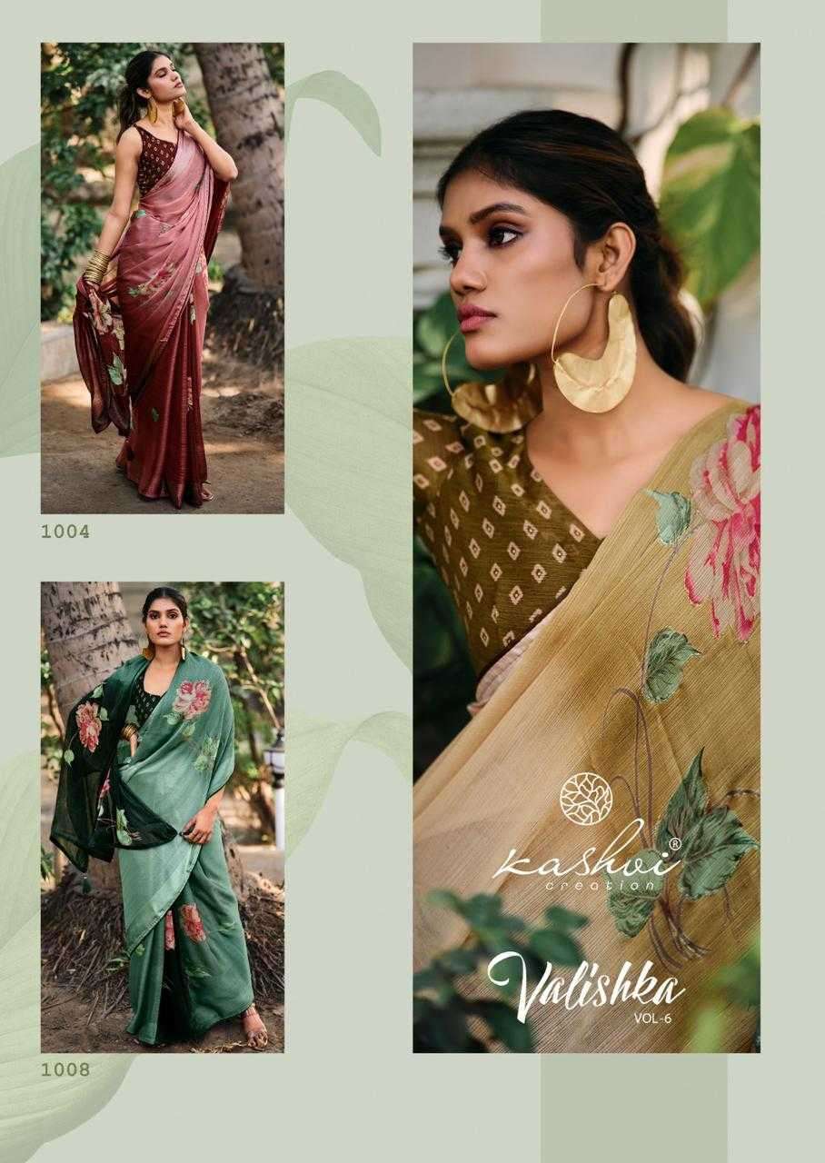 | Name: | kashvi-VALISHKA VOL-6 SERIES 1001 TO 1008 SAREE BY KASHVI |