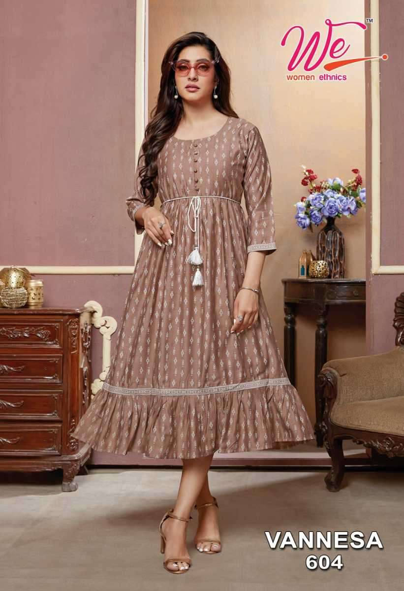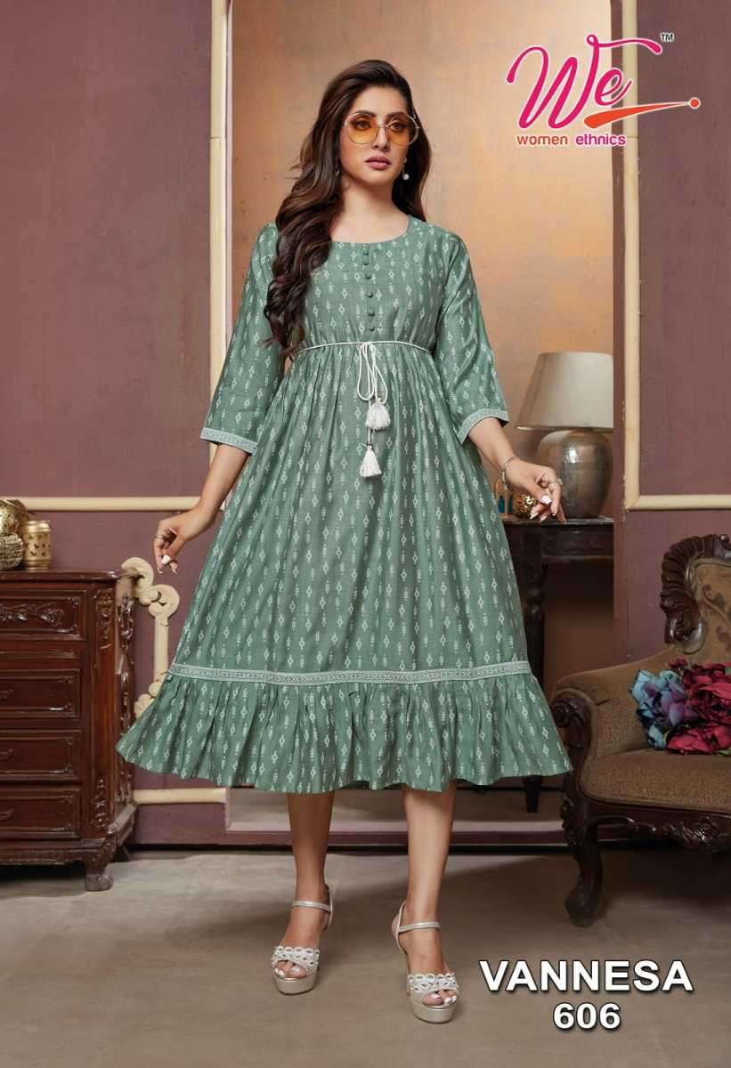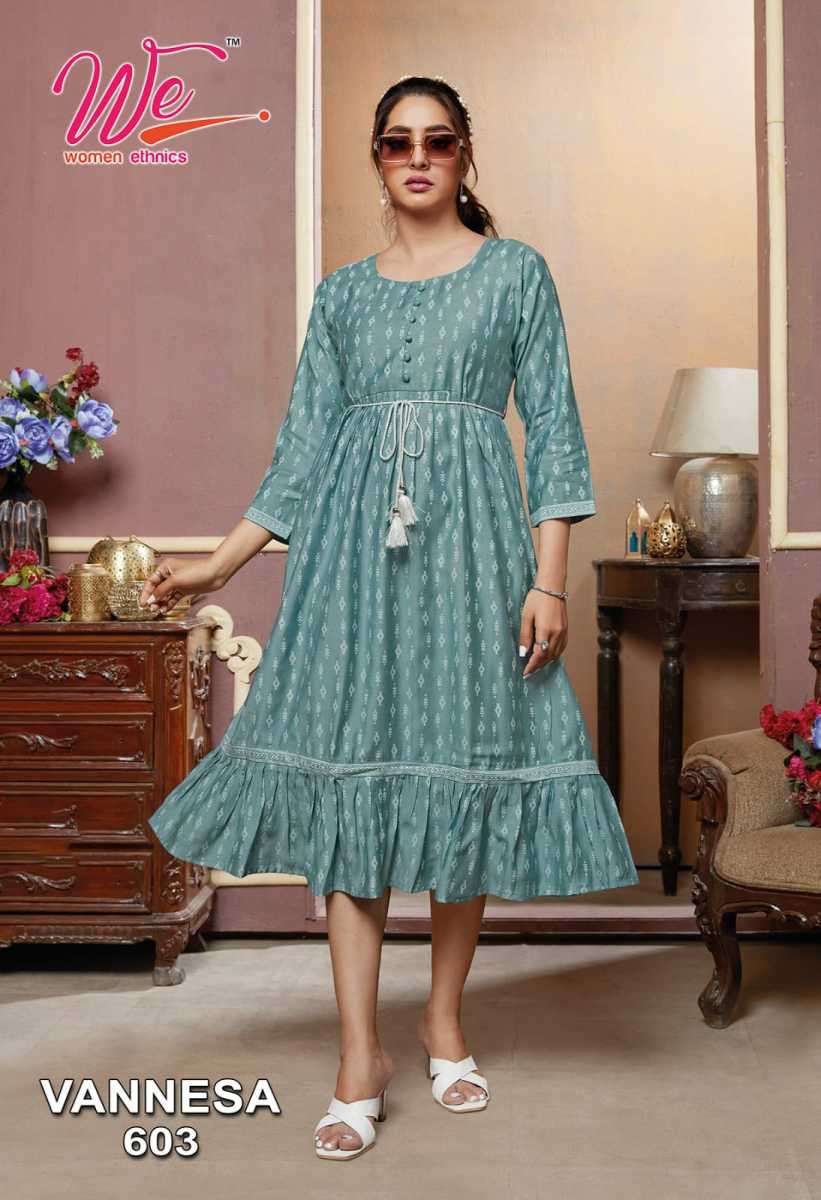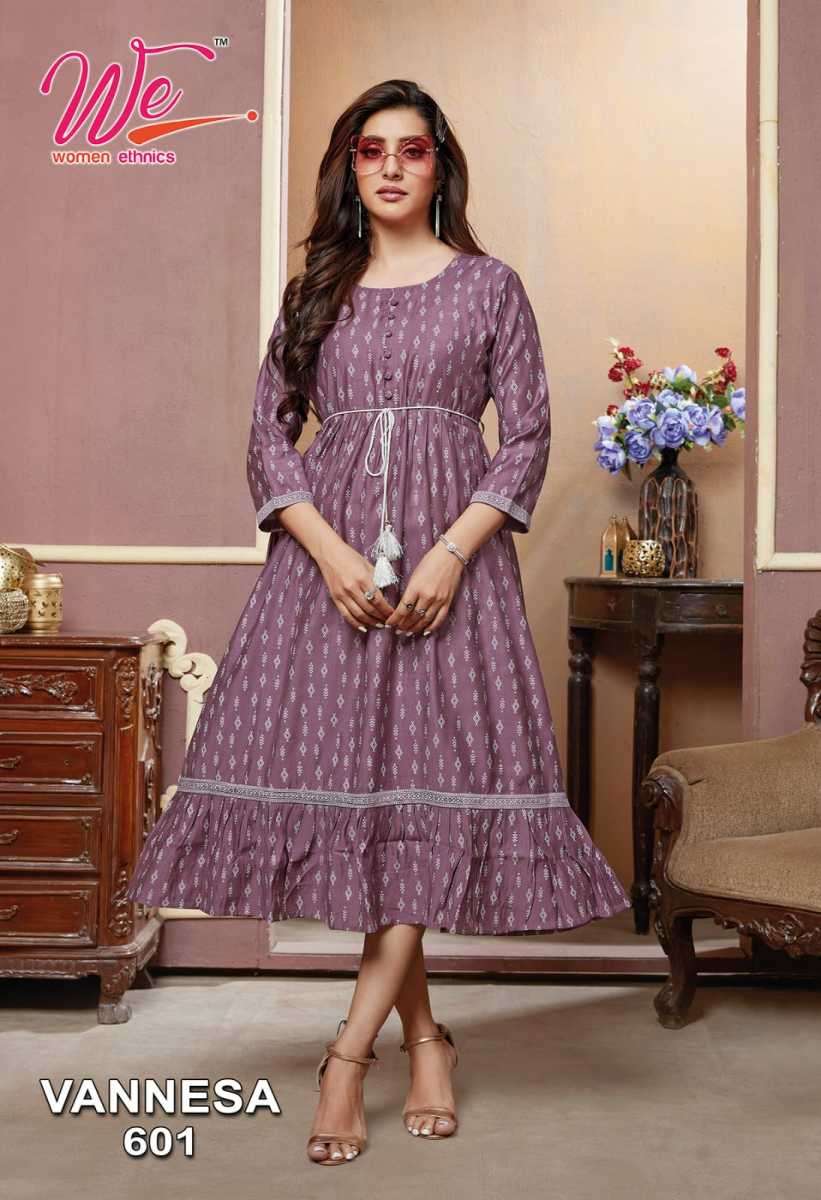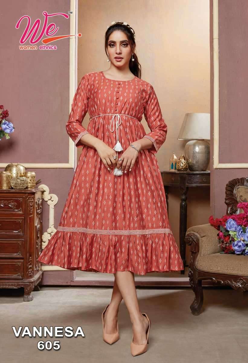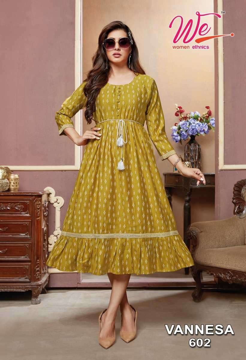 VANNESA KURTI BY WE DESIGNER WITH WORK VISCOSE KURTIS ARE AVAILABLE AT WHOLESALE PRICE