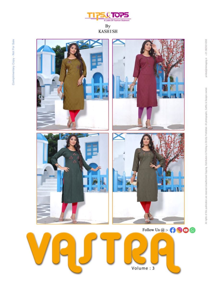Vastra Vol-3 Kurti By Tips & Tops Designer With Hand Work Rayon Viscose Kurtis Are Available At Wholesale Price
