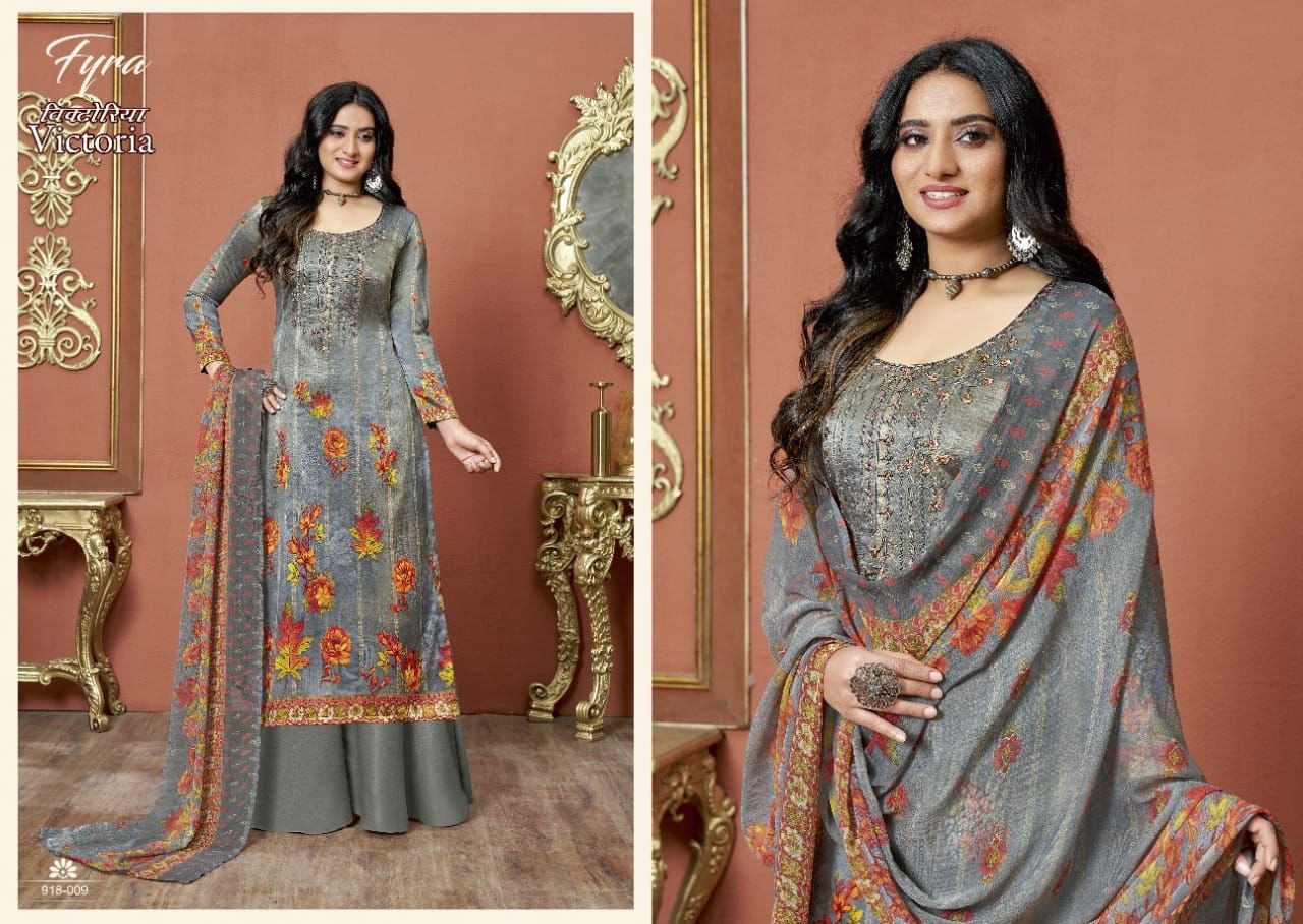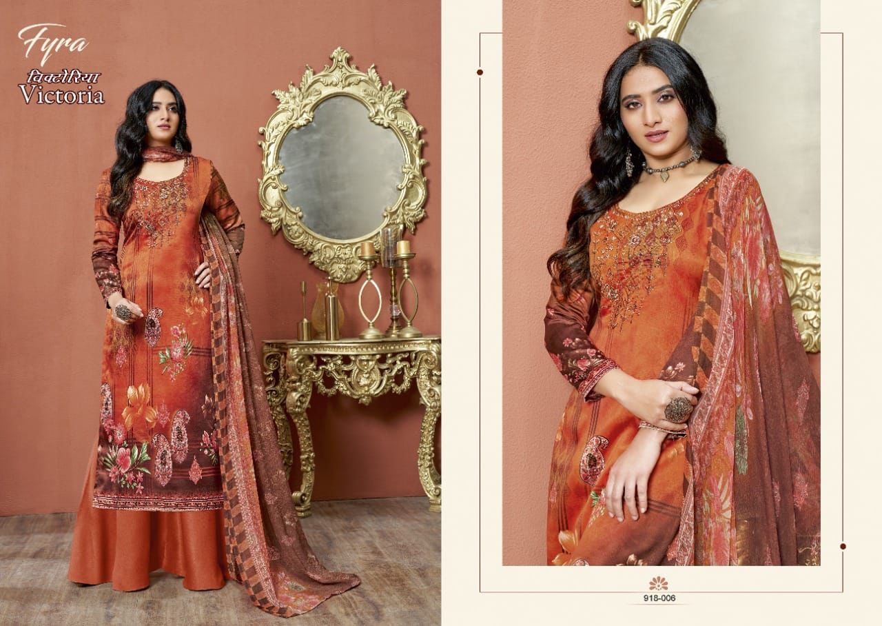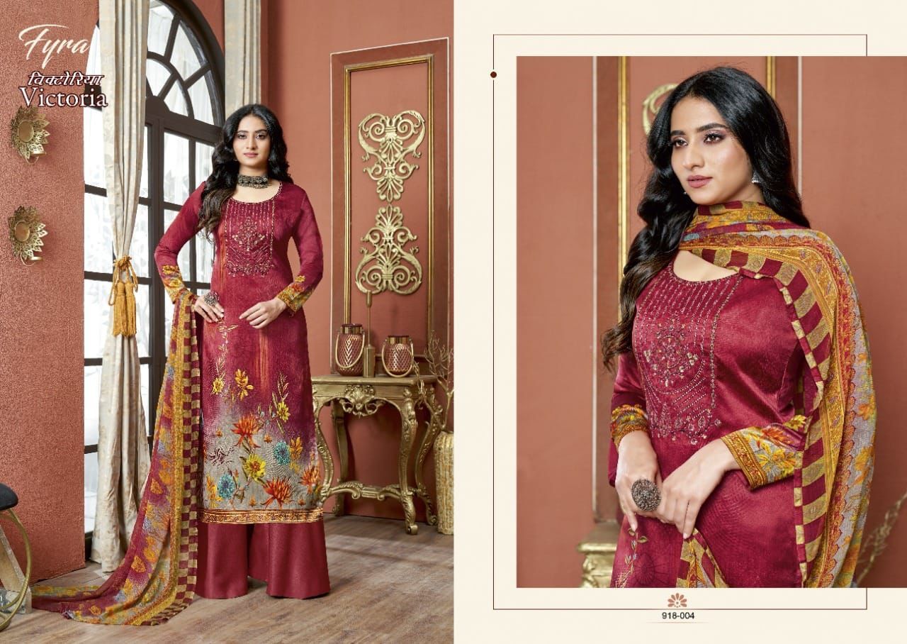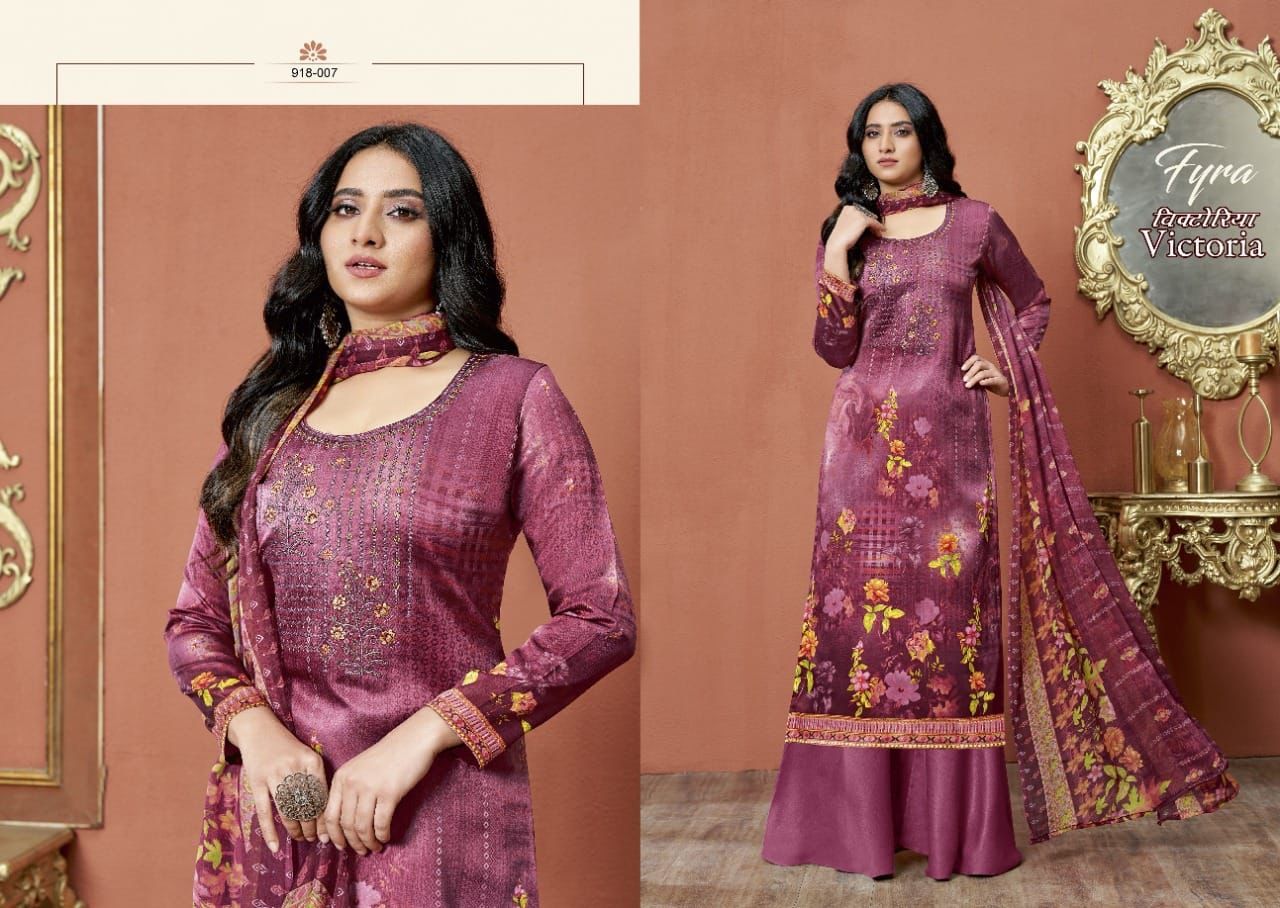 Victoria By Fyra Designer With Printed And Work Zam Cotton Suits Are Available At Wholesale Price